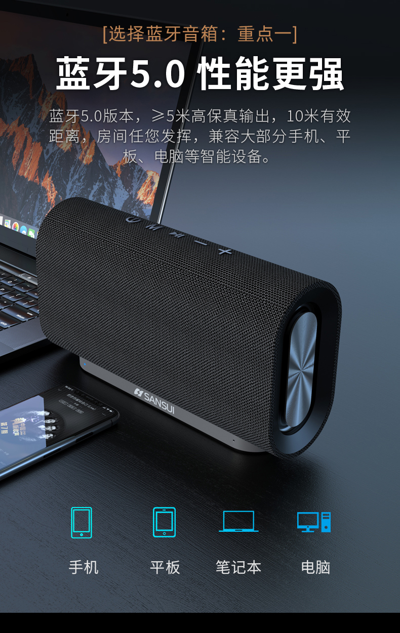 山水(SANSUI)T8无线蓝牙环绕立体声音箱 重低音炮户外便携式 2.1声道插卡小音响 黑色经典【20W大功率+户外便携】