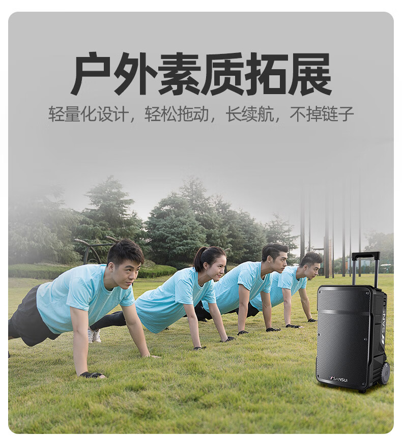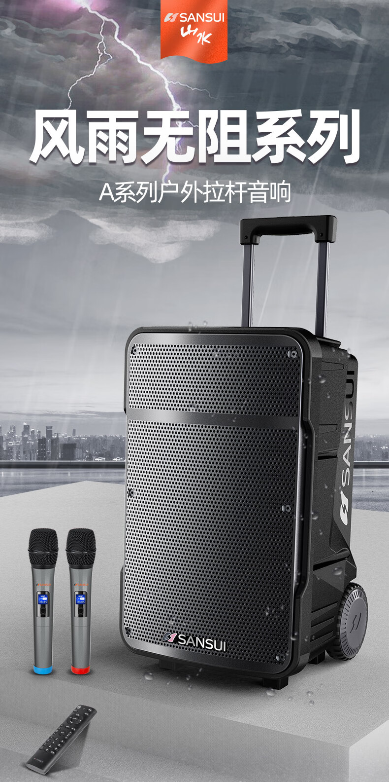 山水(SANSUI)A15 15英寸广场舞音响 便携式移动户外蓝牙拉杆音箱重低音 多媒体会议扩音器带无线麦克风