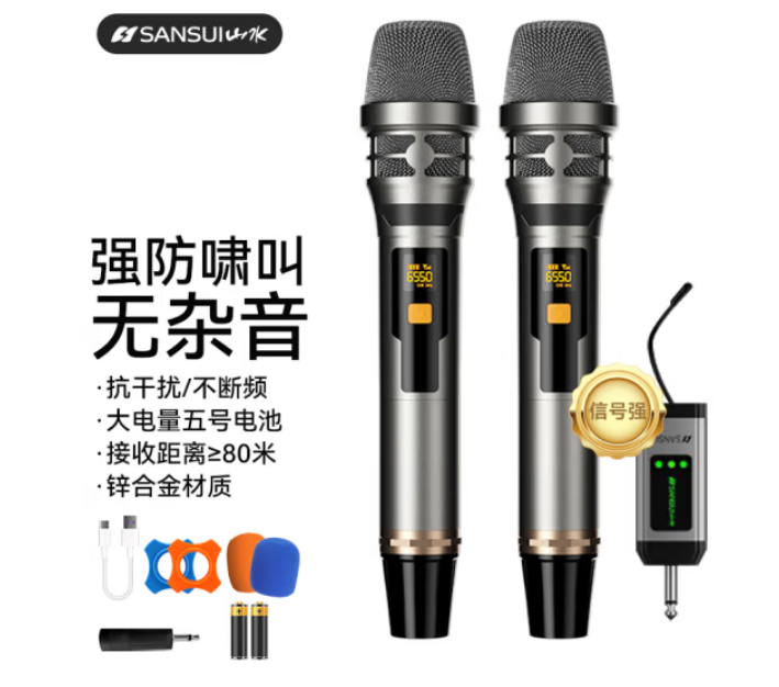 山水(SANSUI)K40无线话筒家庭KTV唱歌演讲主持会议K歌电视音箱音响户外通用万能麦克风一拖二