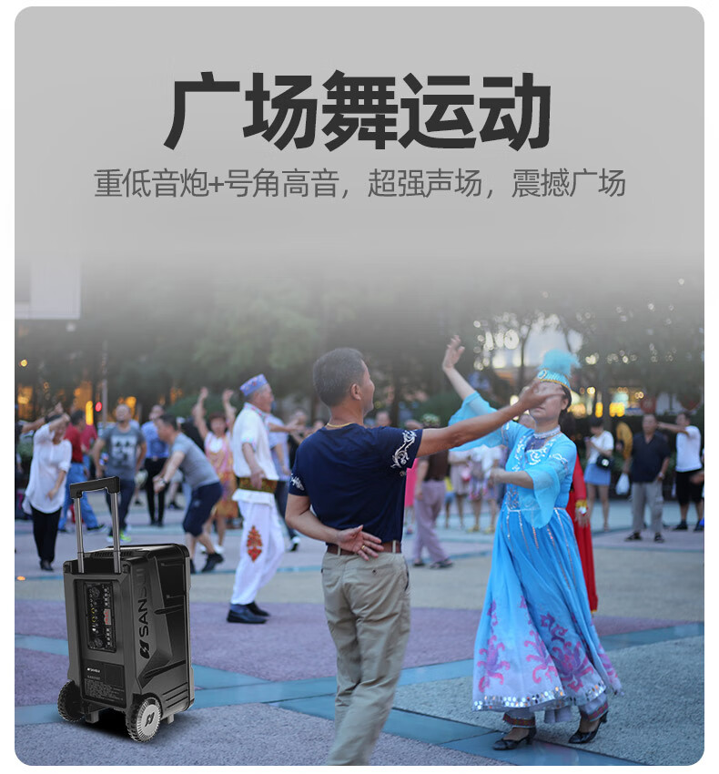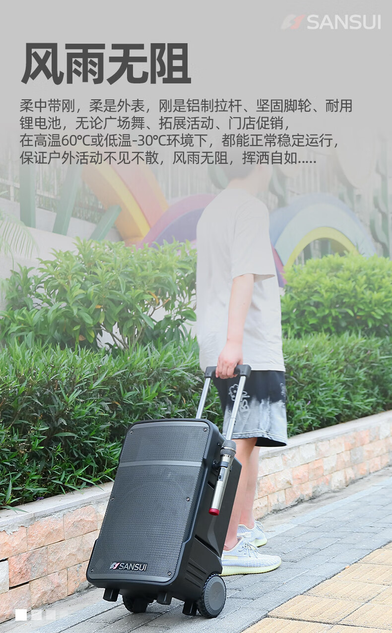 山水(SANSUI)A08 8英寸广场舞音响大功率便携式移动户外蓝牙拉杆音箱多媒体会议扩音器带无线麦克风