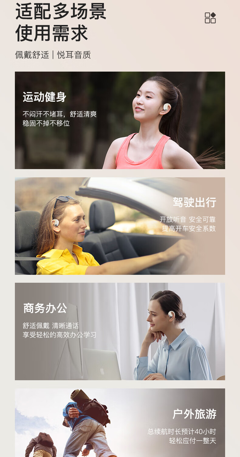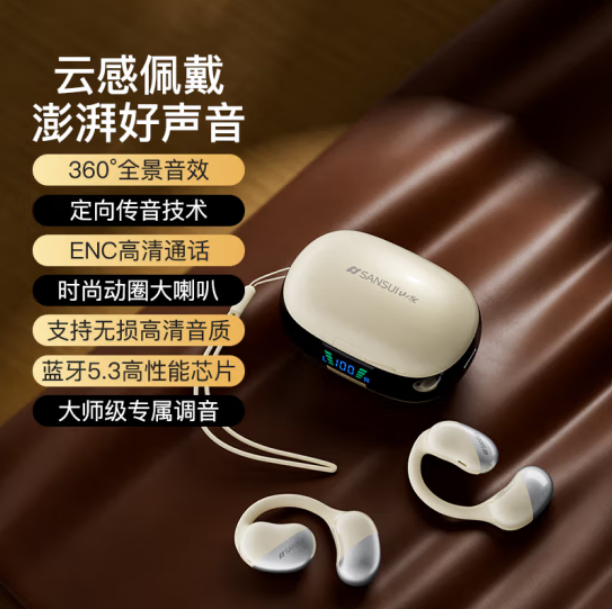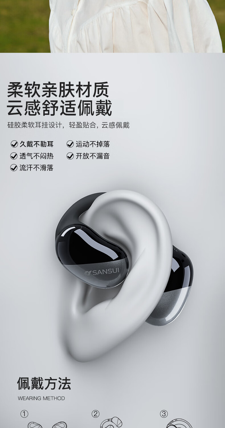 山水(SANSUI)TW91蓝牙耳机不入耳开放式运动降噪耳机骨传导概念无线挂耳式跑步超长续航适用华为苹果 白