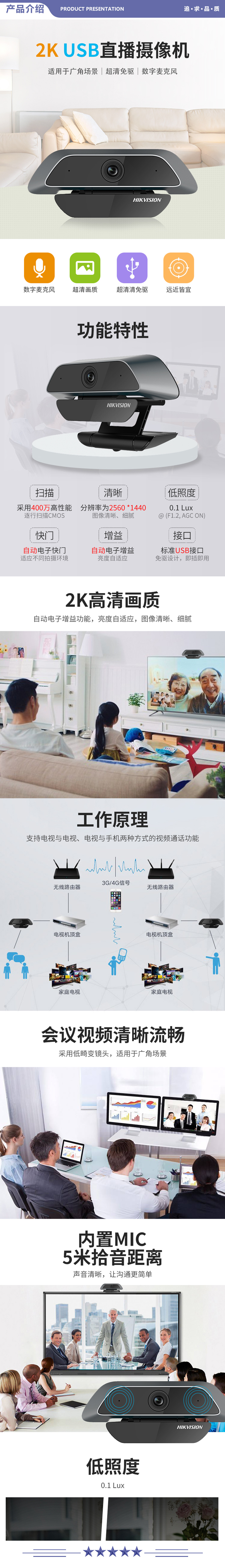 海康威视 U14 会议摄像头400万2K高清远程视频通话直播网课考研复试教学麦克风免驱
