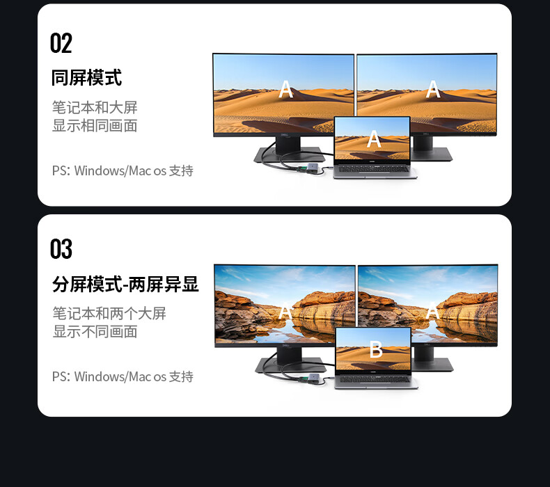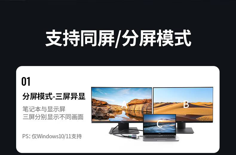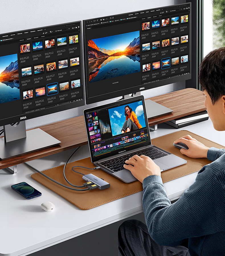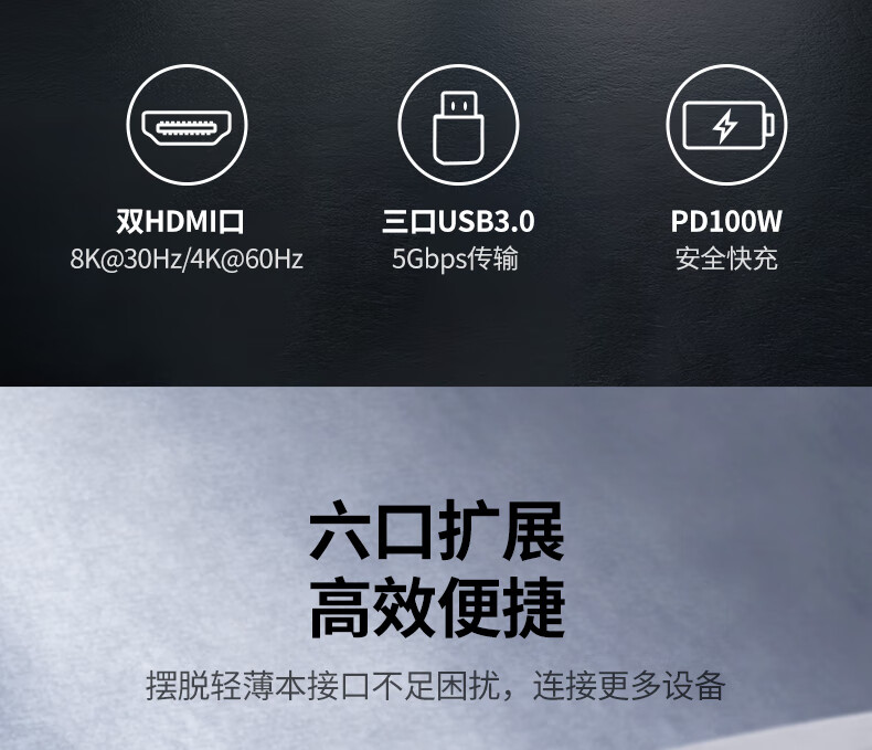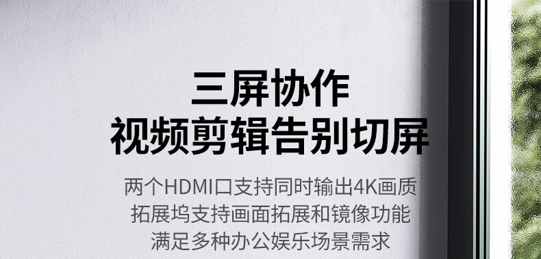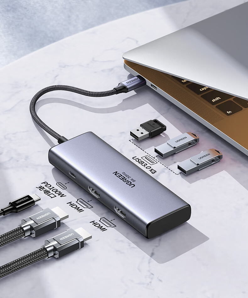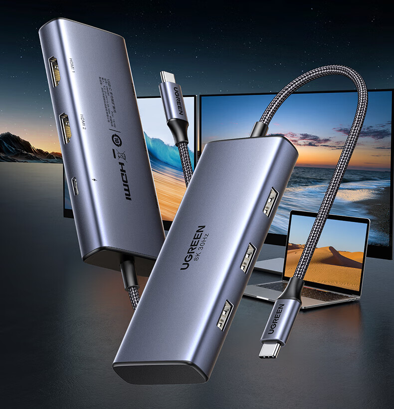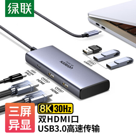 绿联15769 Type-C扩展坞USB-C转双HDMI拓展坞雷电4转接头HUB分线器 通用笔记本iPad电脑转换器