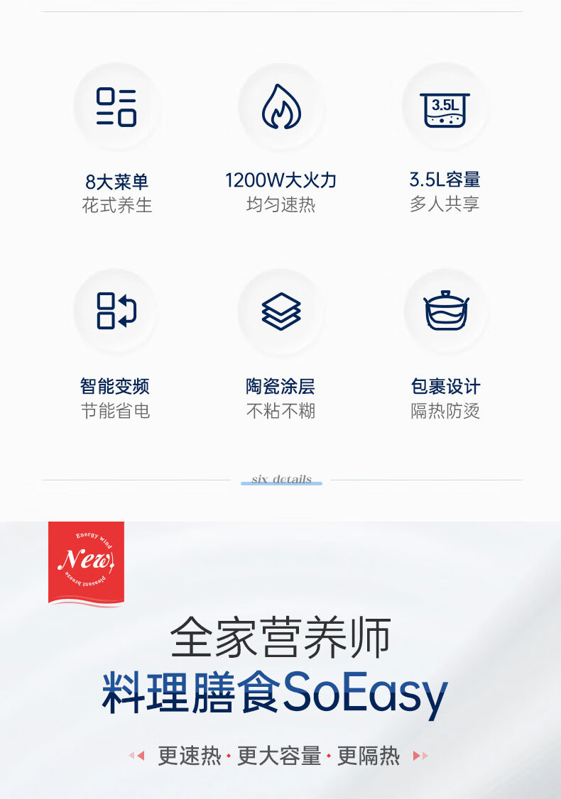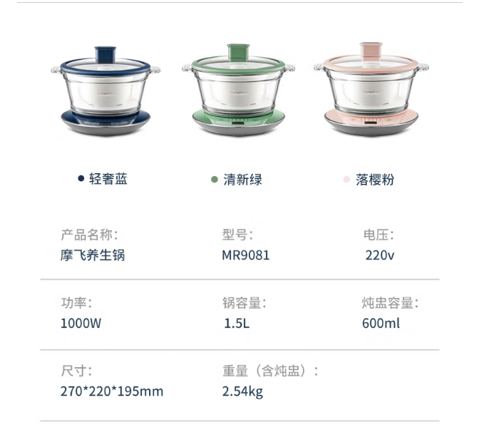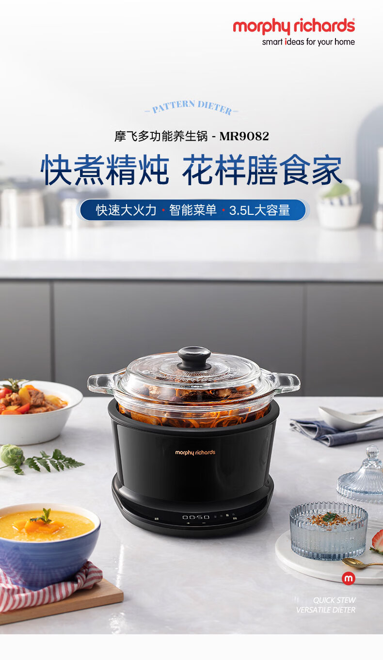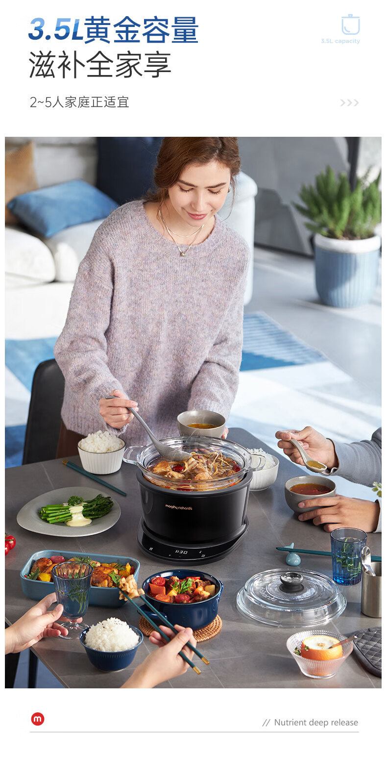 摩飞电器(Morphyrichards)电炖锅 煲汤锅养生锅 家用3.5L可预约定时炖汤电煮锅煮粥锅 多功能婴儿辅食料理锅MR9082 颜色备注