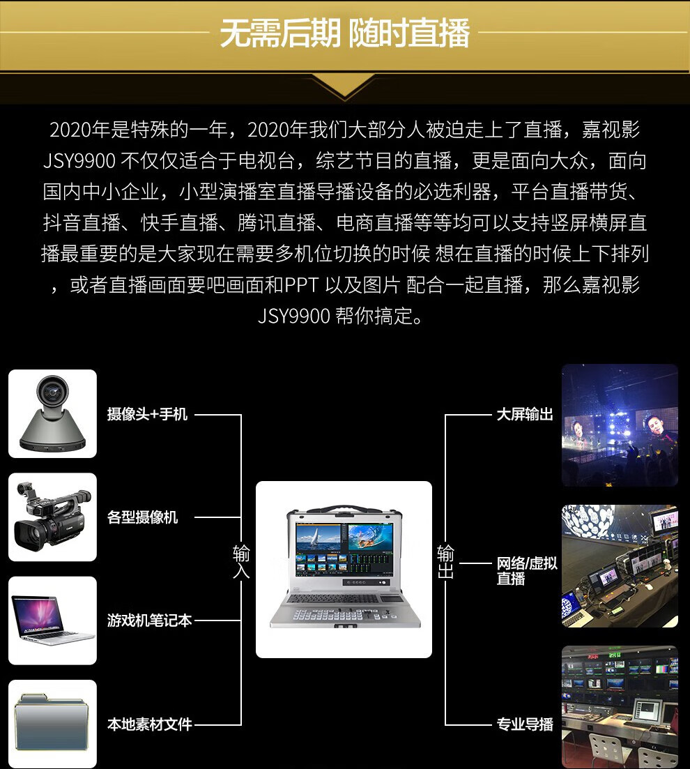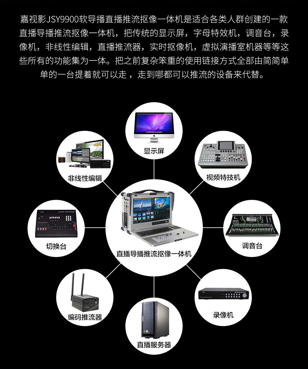 嘉视影9900导播台切换台vmix直播录播一体机虚拟抠像视频推流拉流微赞抖音微信线上教学会议户外(高清8路)