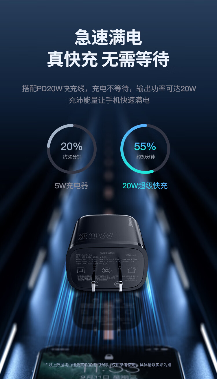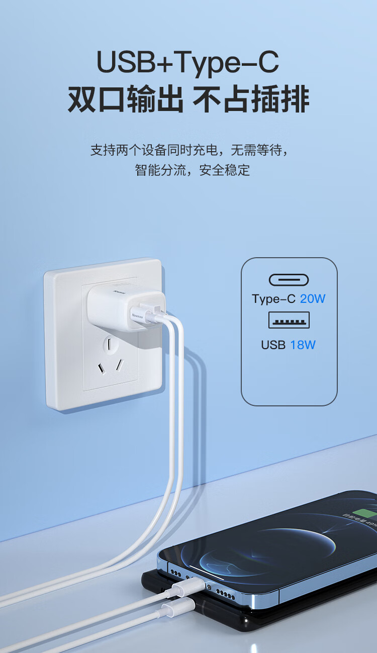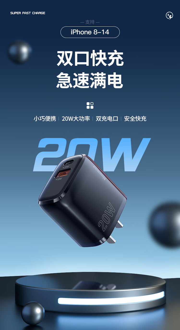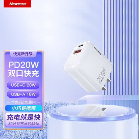 纽曼(Newmine)ZD20B-AC 苹果充电器iPhone14充电头PD20W快充苹果14Plus/13ProMax/12/11/iPadmini华为手机平板Type-C插头