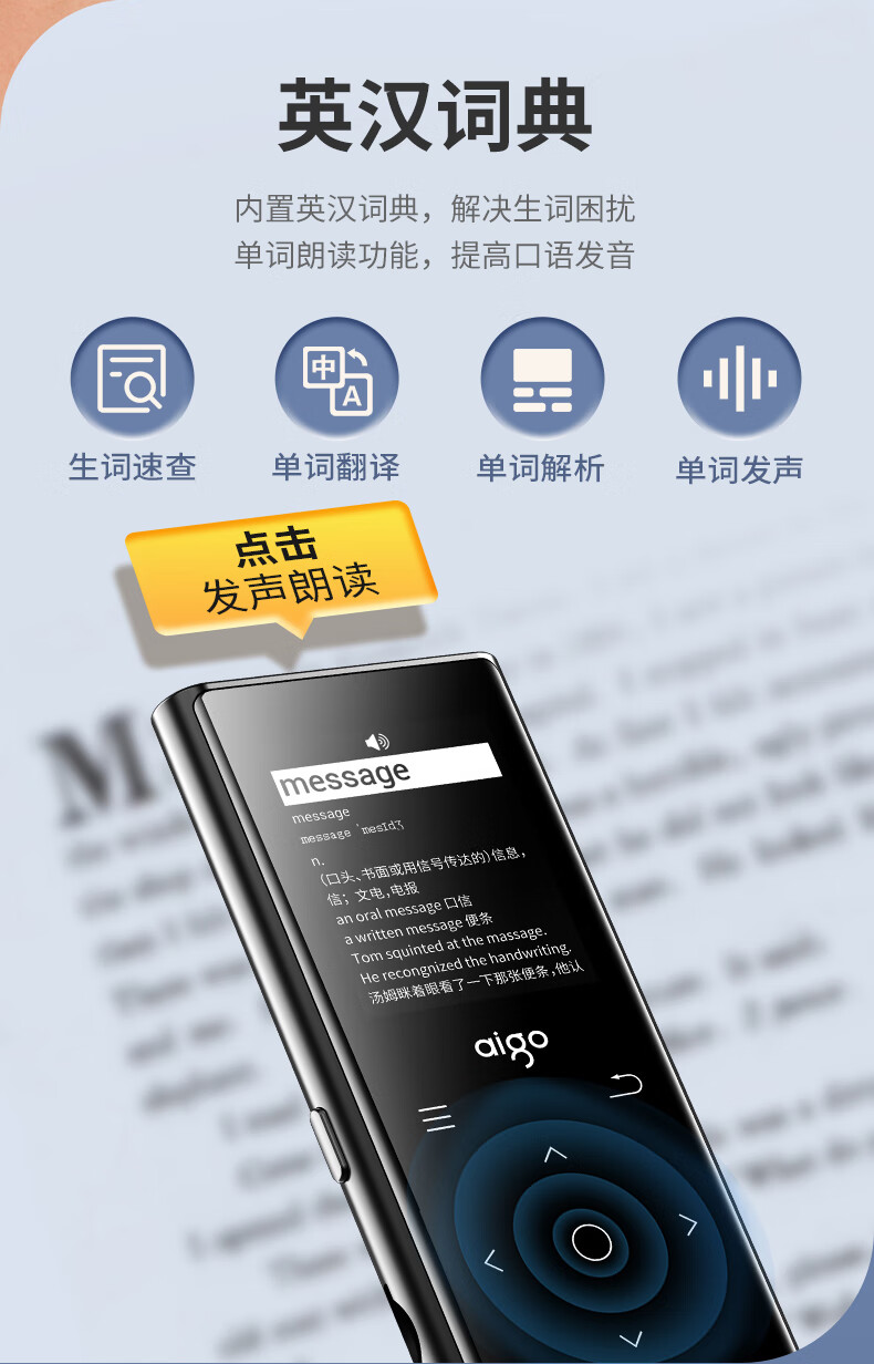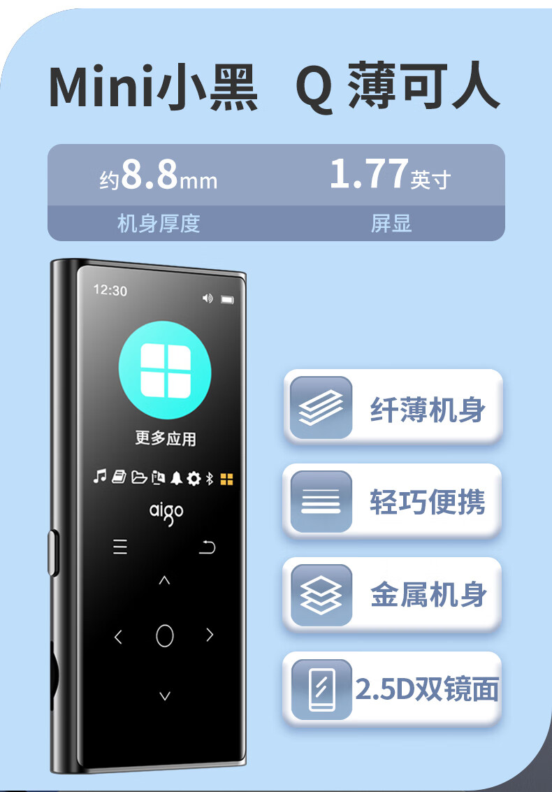 爱国者aigo MP3-801 8G MP3/MP4无损HIFI蓝牙音乐播放器随身听学生听歌神器英语听力mp5播放器 触摸按键