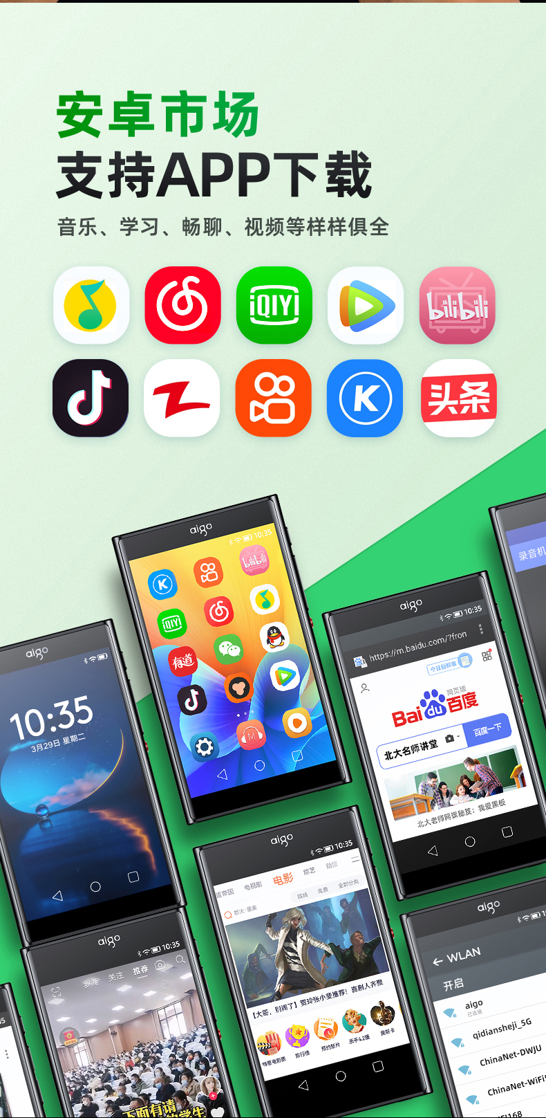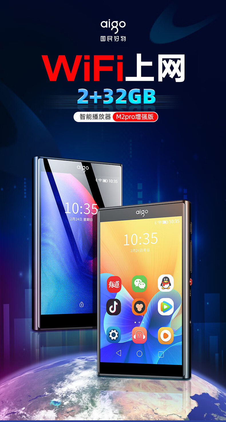 爱国者aigo 可上网mp3/mp4 八核智能mp5音乐播放器 mp6高清视频随身听 2+32G安卓蓝牙WIFI学生电子书 M2Pro