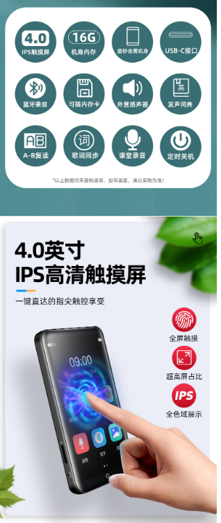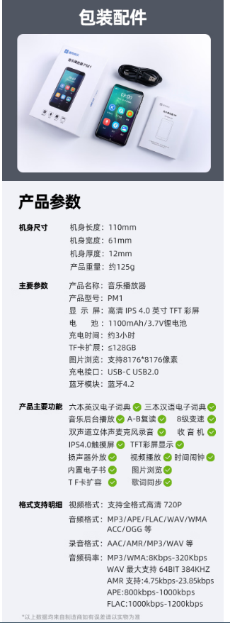 酷狗KUGOU PM1 内置16G 蓝牙词典mp3/mp4 HIFI无损音乐播放器 学生随身听英语 4.0英寸触摸屏mp5/mp6高清视频
