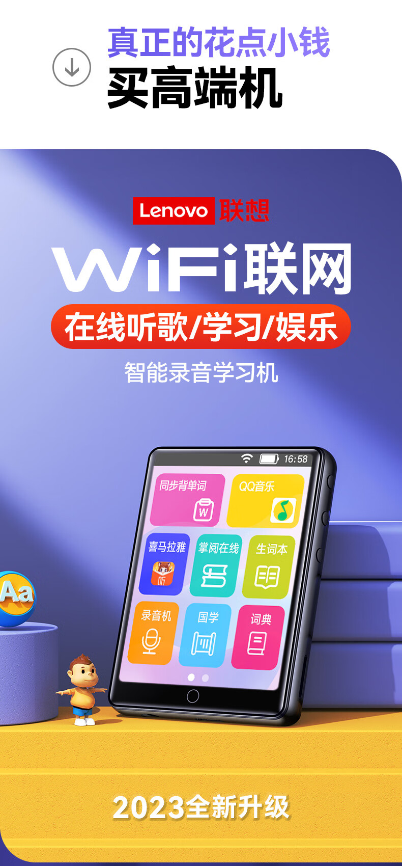 联想(Lenovo)C5可上网MP4/MP3播放器/学生随身听/无损音乐视频英汉词典AI助手2.8英寸触屏电子书录音笔8G
