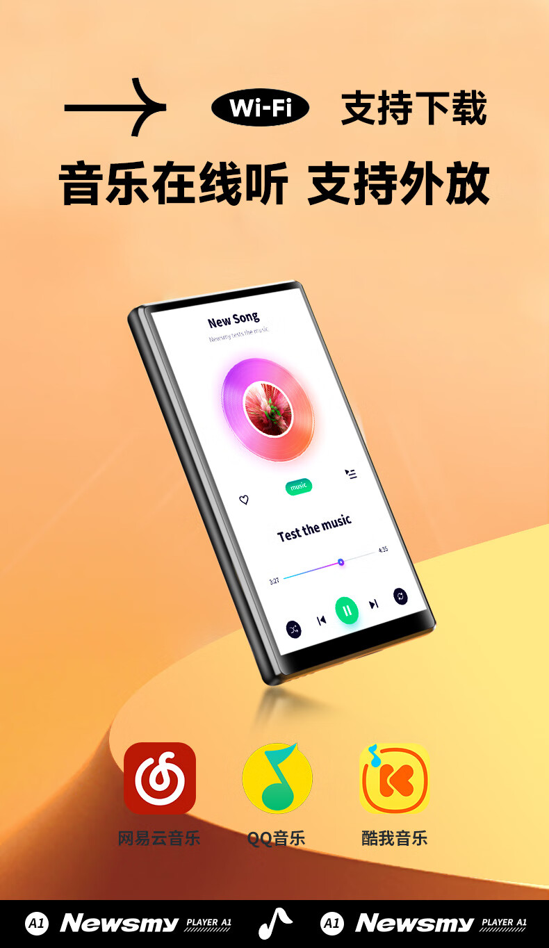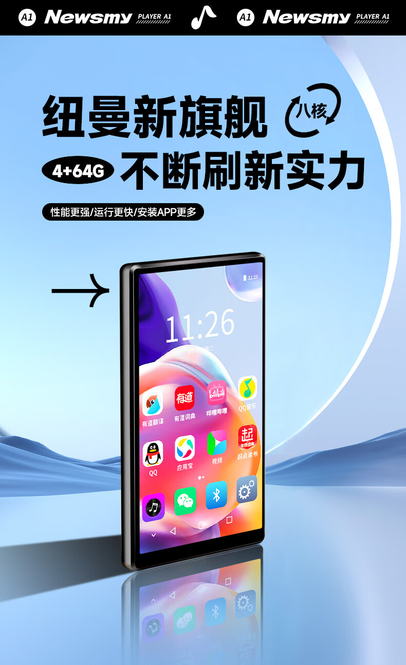 纽曼A1智能mp3/mp4蓝牙播放器4+64G 安卓WIFI可上网mp5mp6学生音乐在线听歌视频电子书小说5.0英寸触屏 黑色