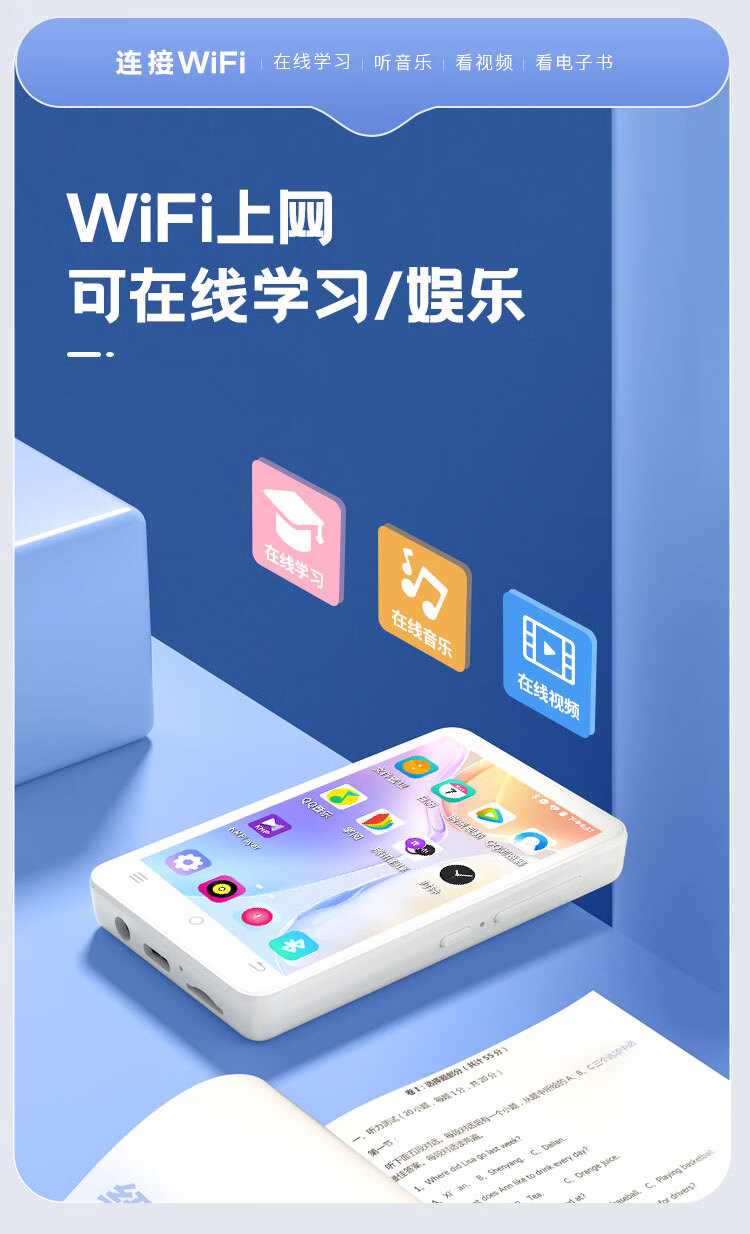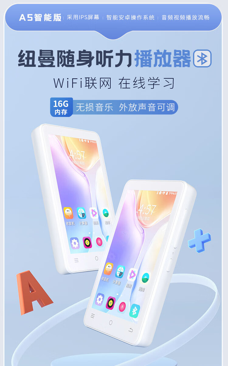 纽曼A5智能mp3/mp4播放器WIFI可上网mp5 蓝牙学生随身听词典翻译英语听力在线听歌 3.5英寸触摸屏 16G 白