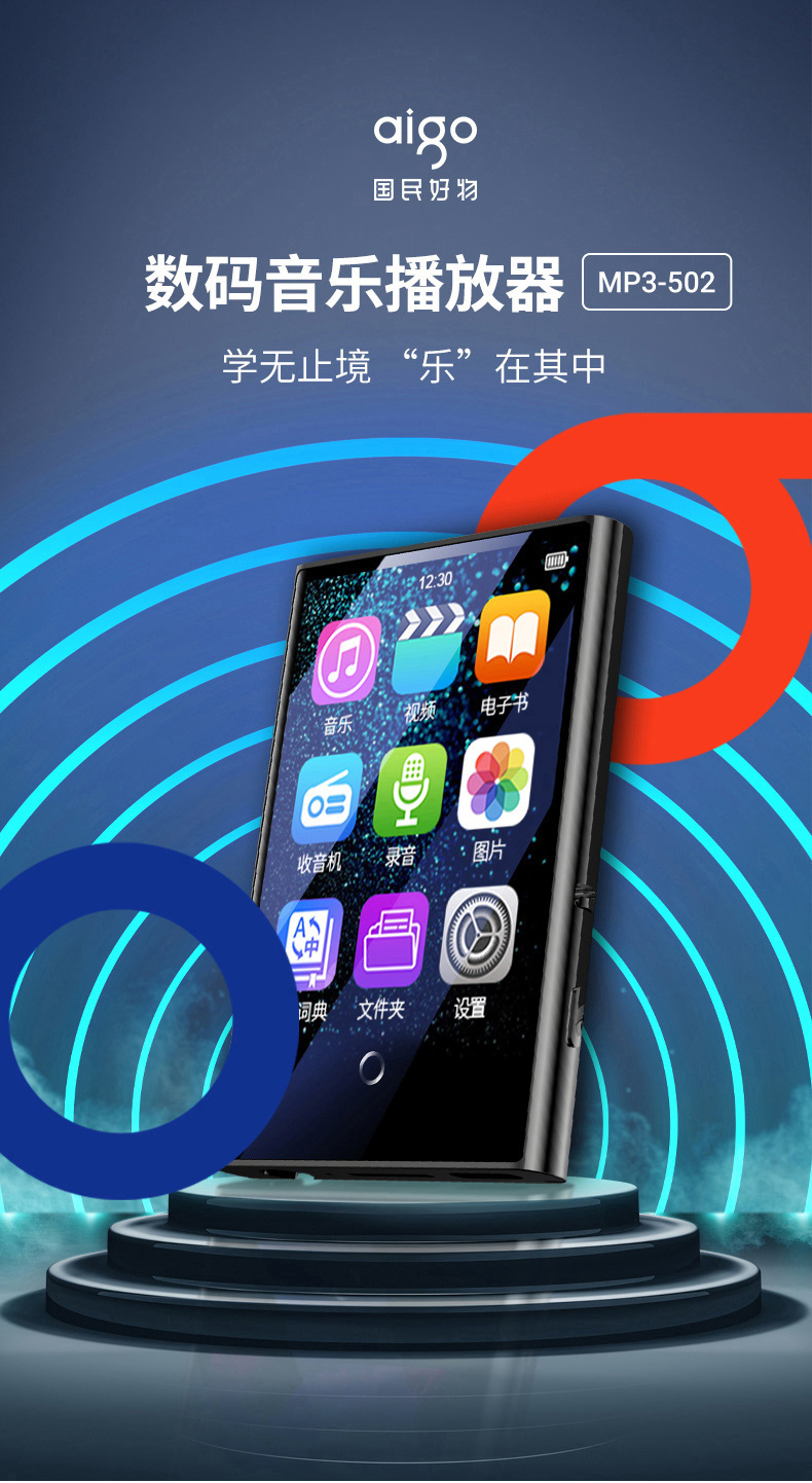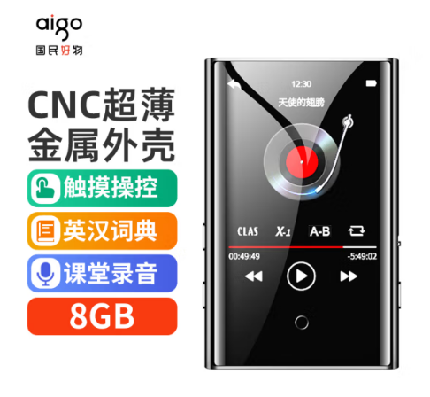 爱国者aigo MP3-502 8G蓝牙词典外放 全面触屏mp4mp5无损音乐HIFI播放器学生英语随身听运动便携金属灰色