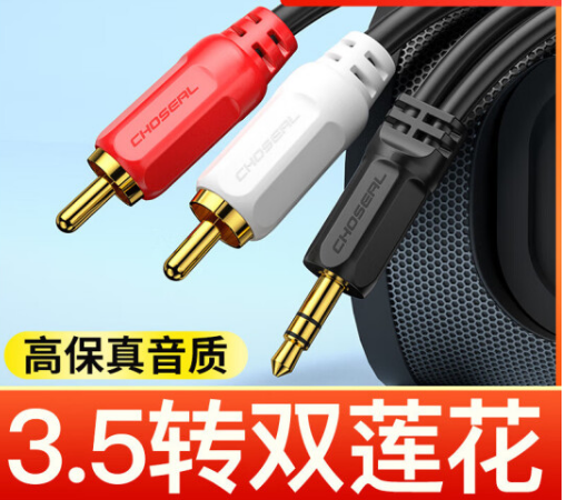秋叶原音频线一分二连接手机音响功放3.5转双莲花头音箱rca线 3.5转双莲花Q304-1 30米