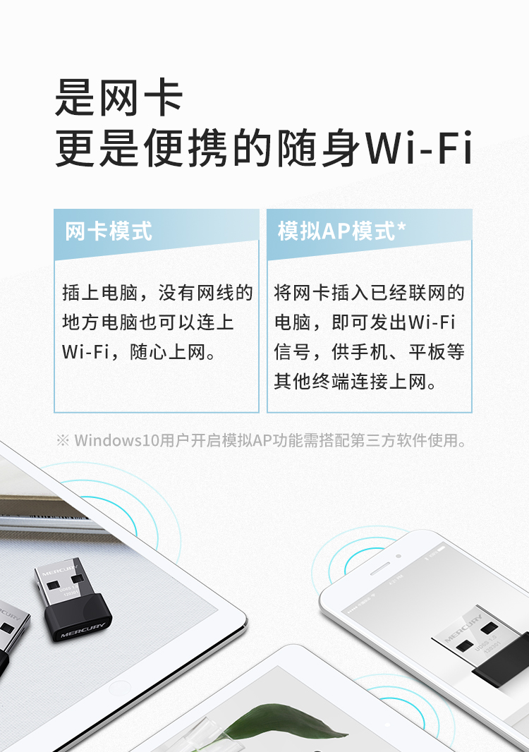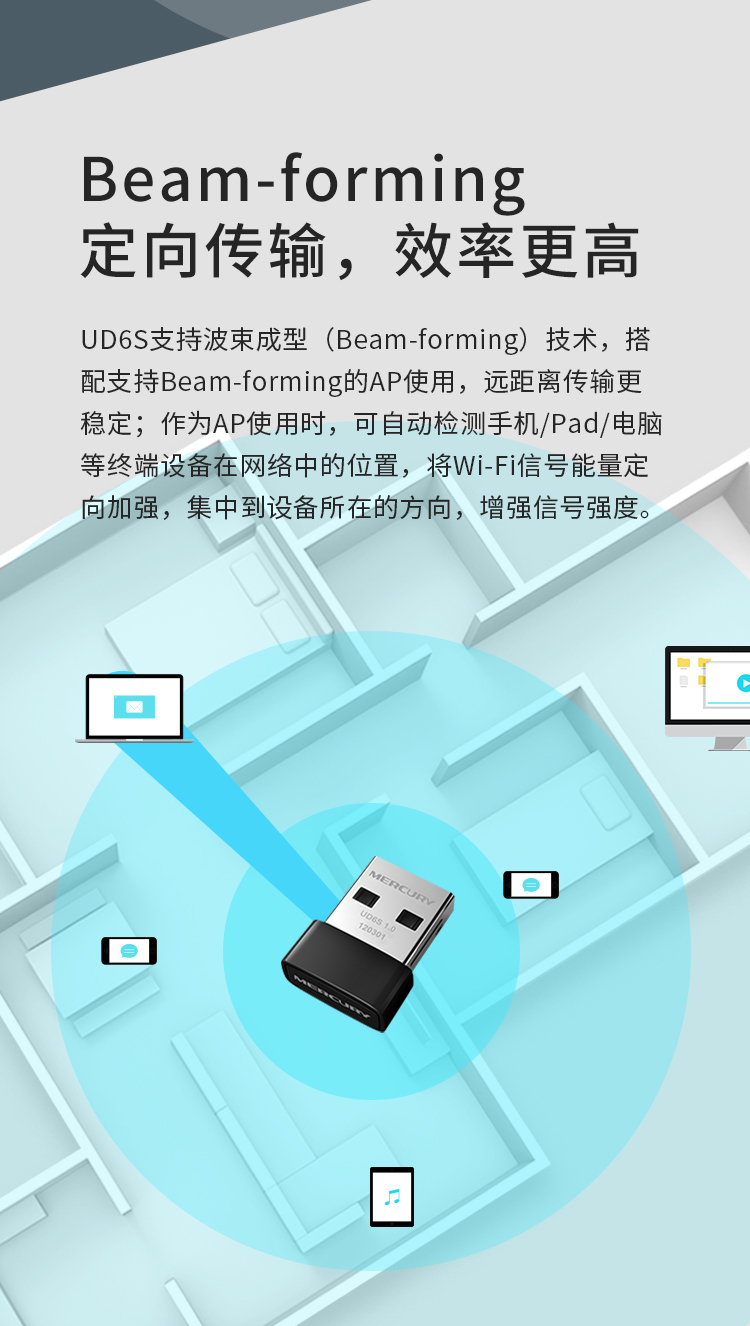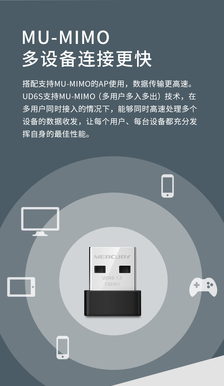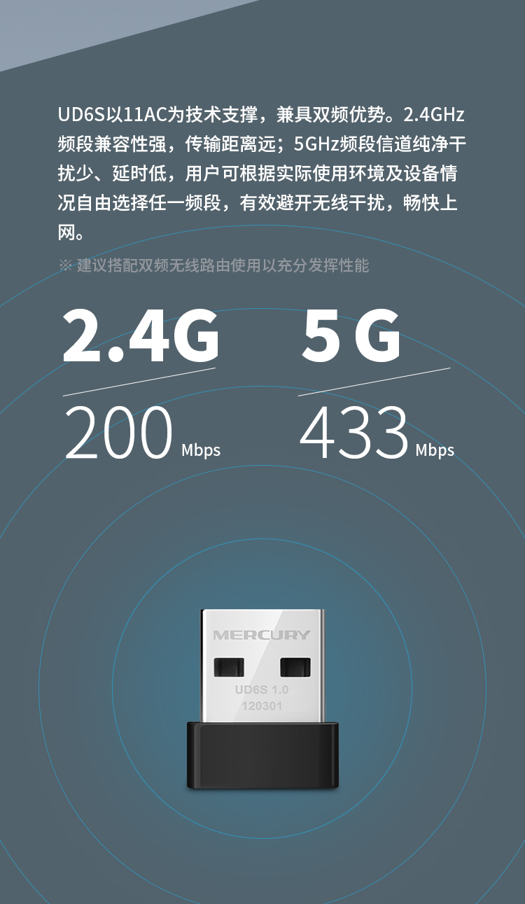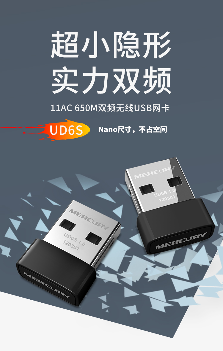 水星(MERCURY)UD6S 5G双频650M USB无线网卡 迷你mini随身wifi接收发射器 台式笔记本电脑通用win10免驱