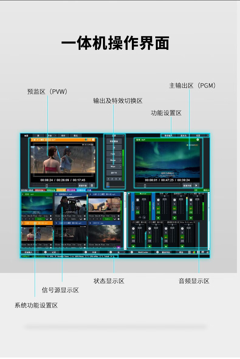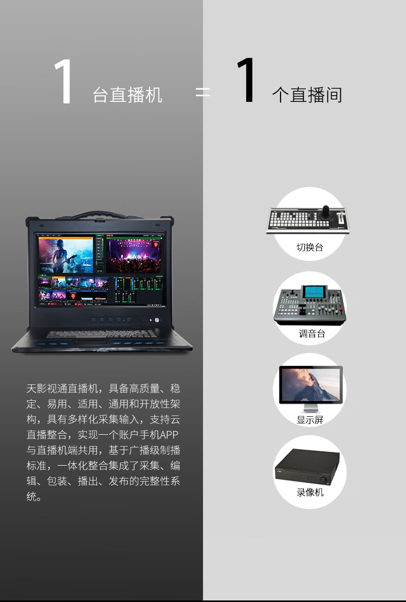 天影视通 便携式切换台多机位录制vmix录播导播字幕台标村ba一体机虚拟抠像系统视频推流拉流高清大屏 TY-550W(pro)