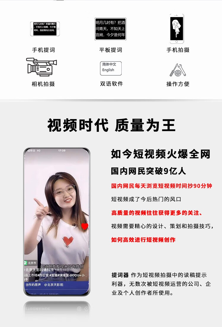 天影视通 TY-320Pro手机平板题词器直播录播ipad手机大屏幕抖音网红自媒体拍摄提词器不含脚架 TY-320Pro