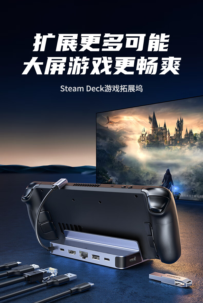 绿联15388 Steam Deck扩展坞 掌机支架拓展坞 底座投屏HDMI高清显示转换器 千兆网口便携基座配件六合一