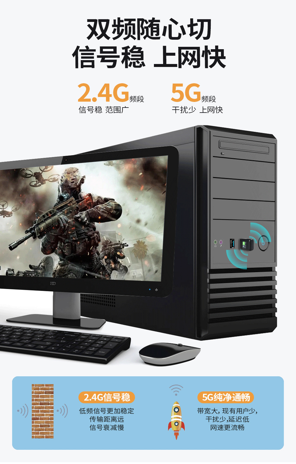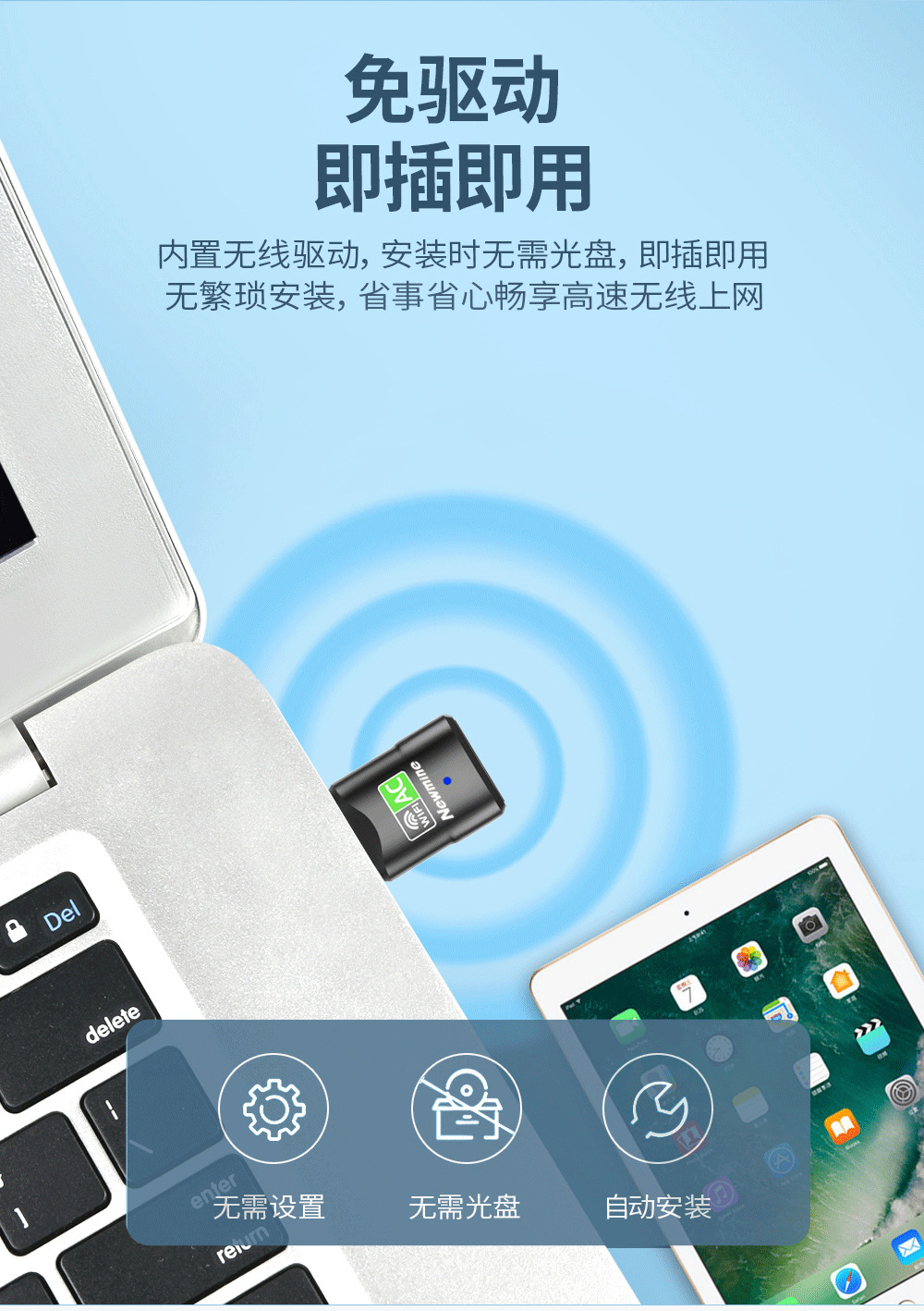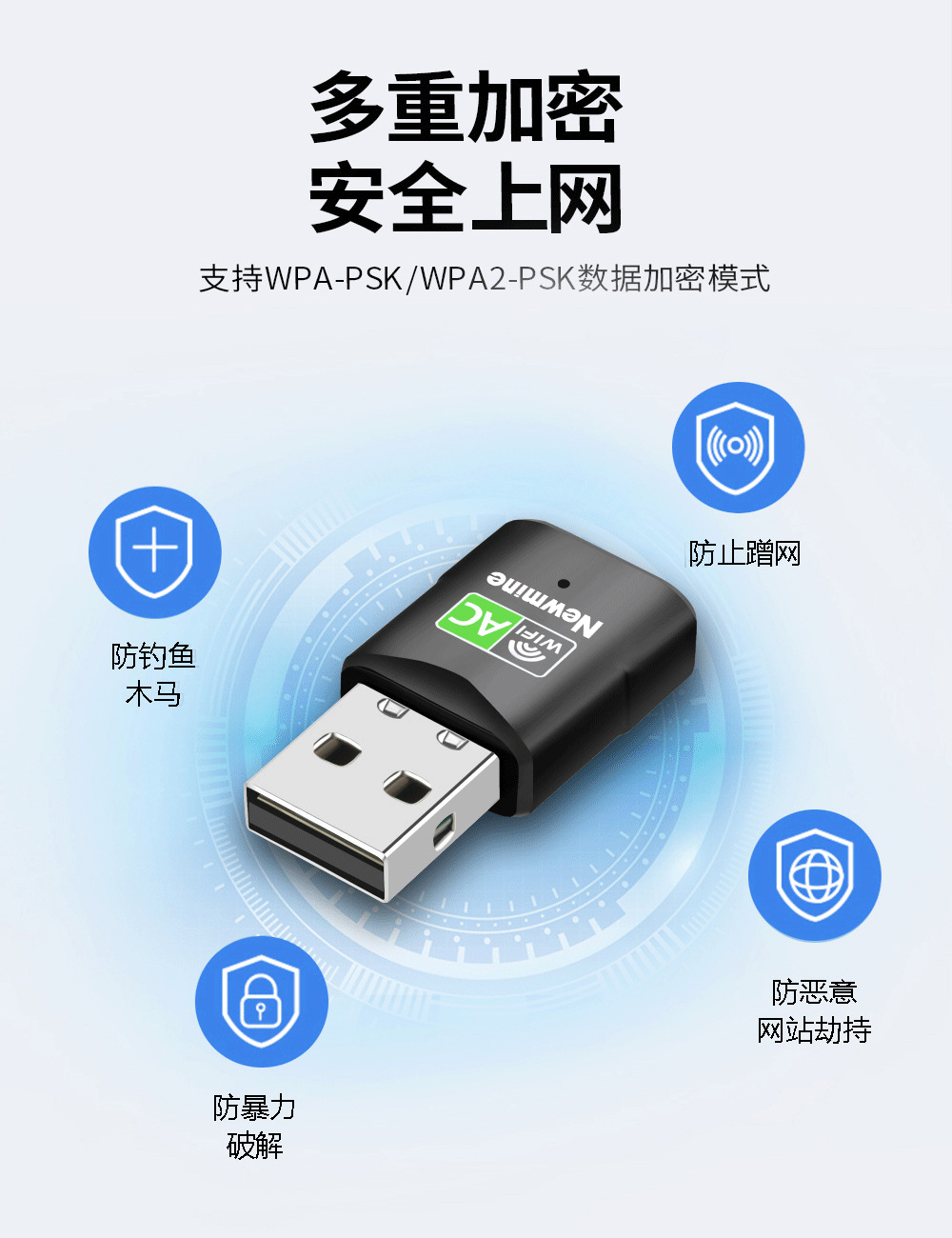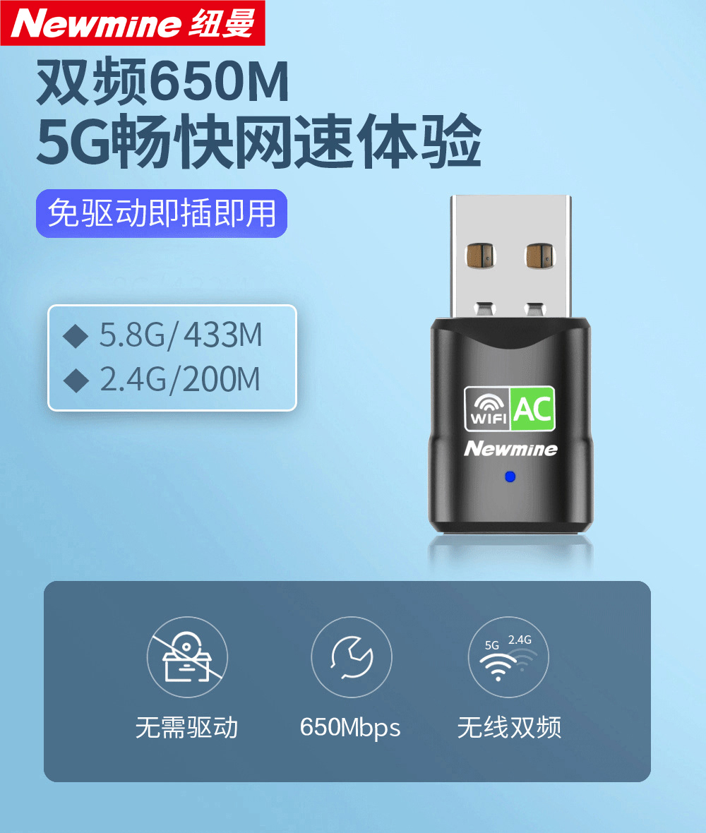 纽曼(Newmine)D650 650M免驱动 USB无线网卡 5G双频无线接收器 随身wifi发射器 免驱
