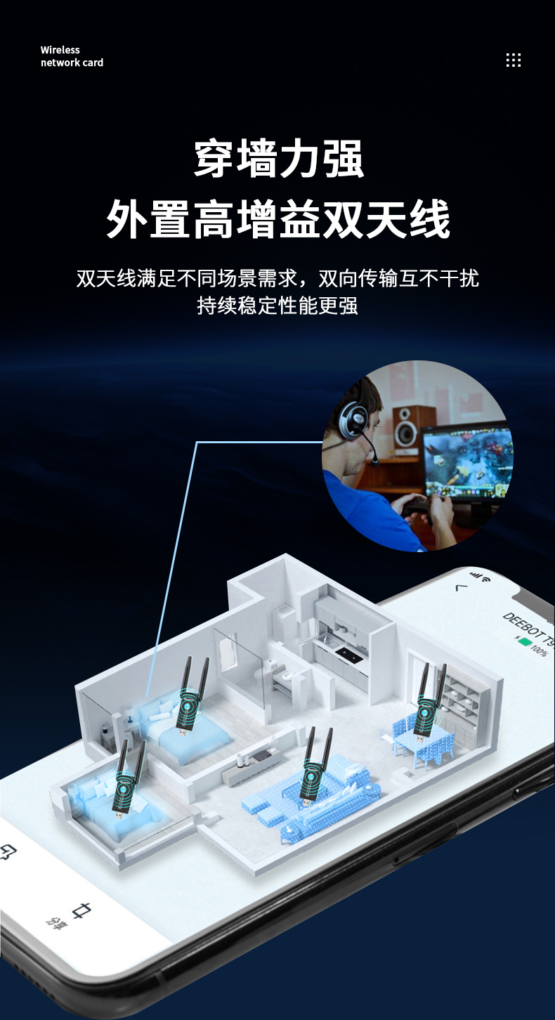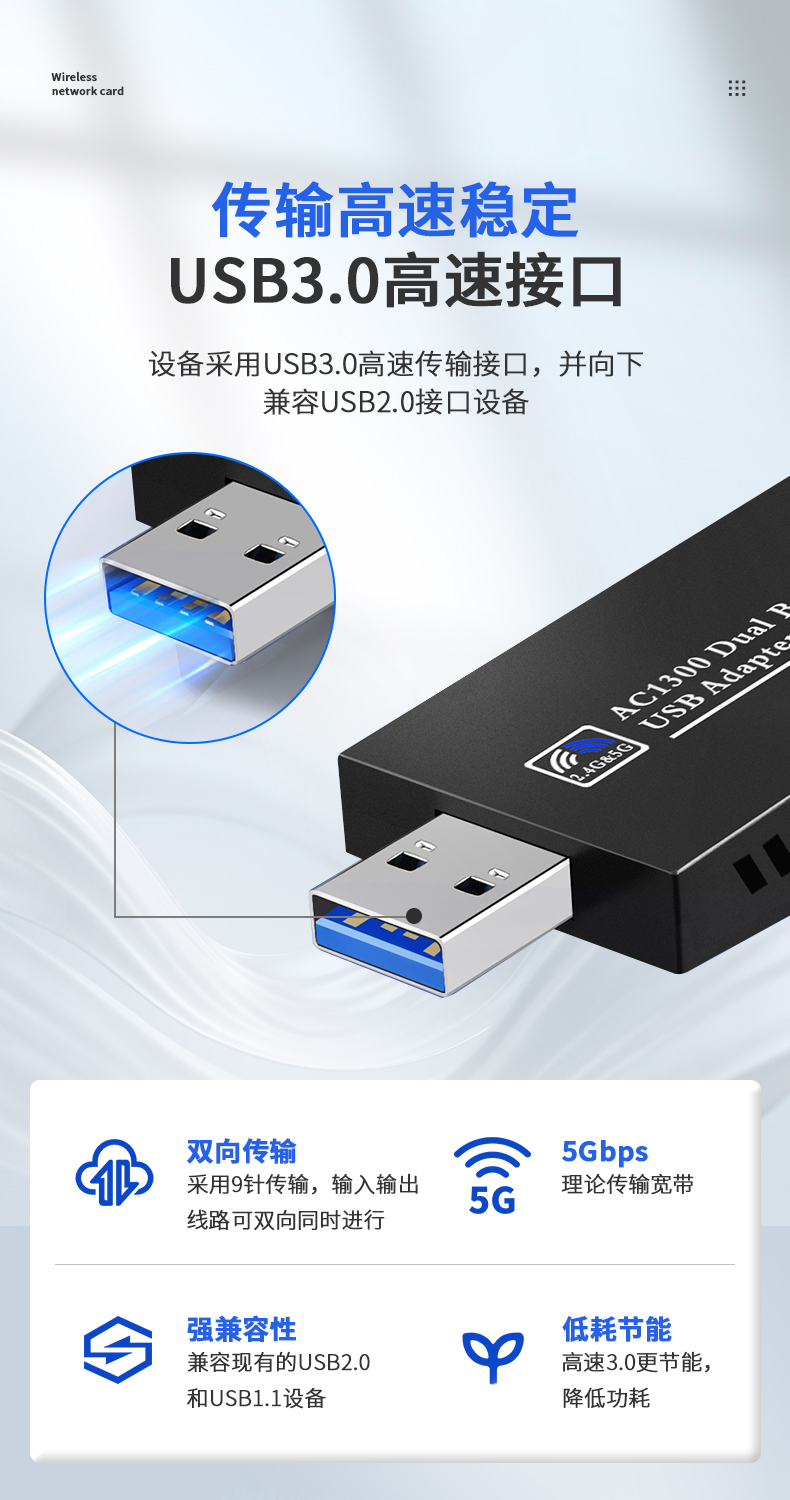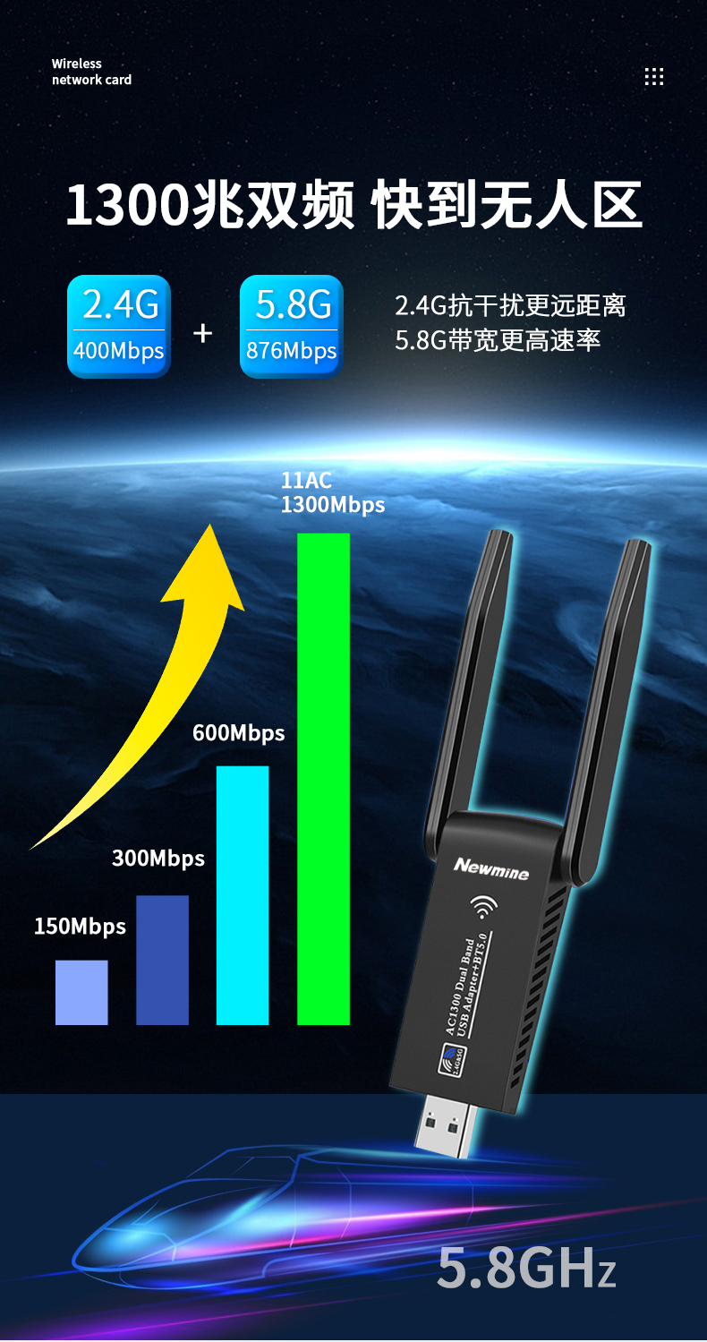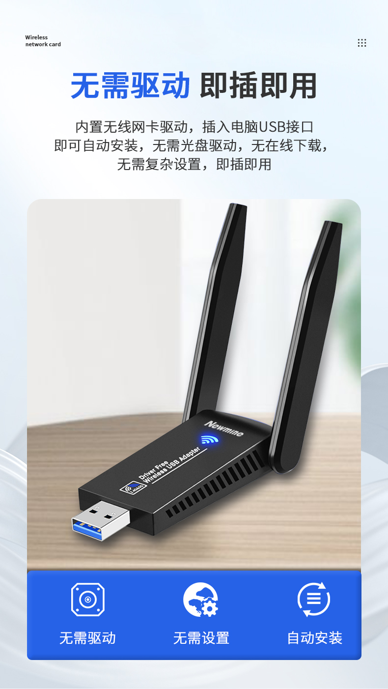 纽曼(Newmine)D1302免驱版 1300M免驱版 USB无线网卡 千兆5G双频随身WiFi接收器发射器 外置双天线