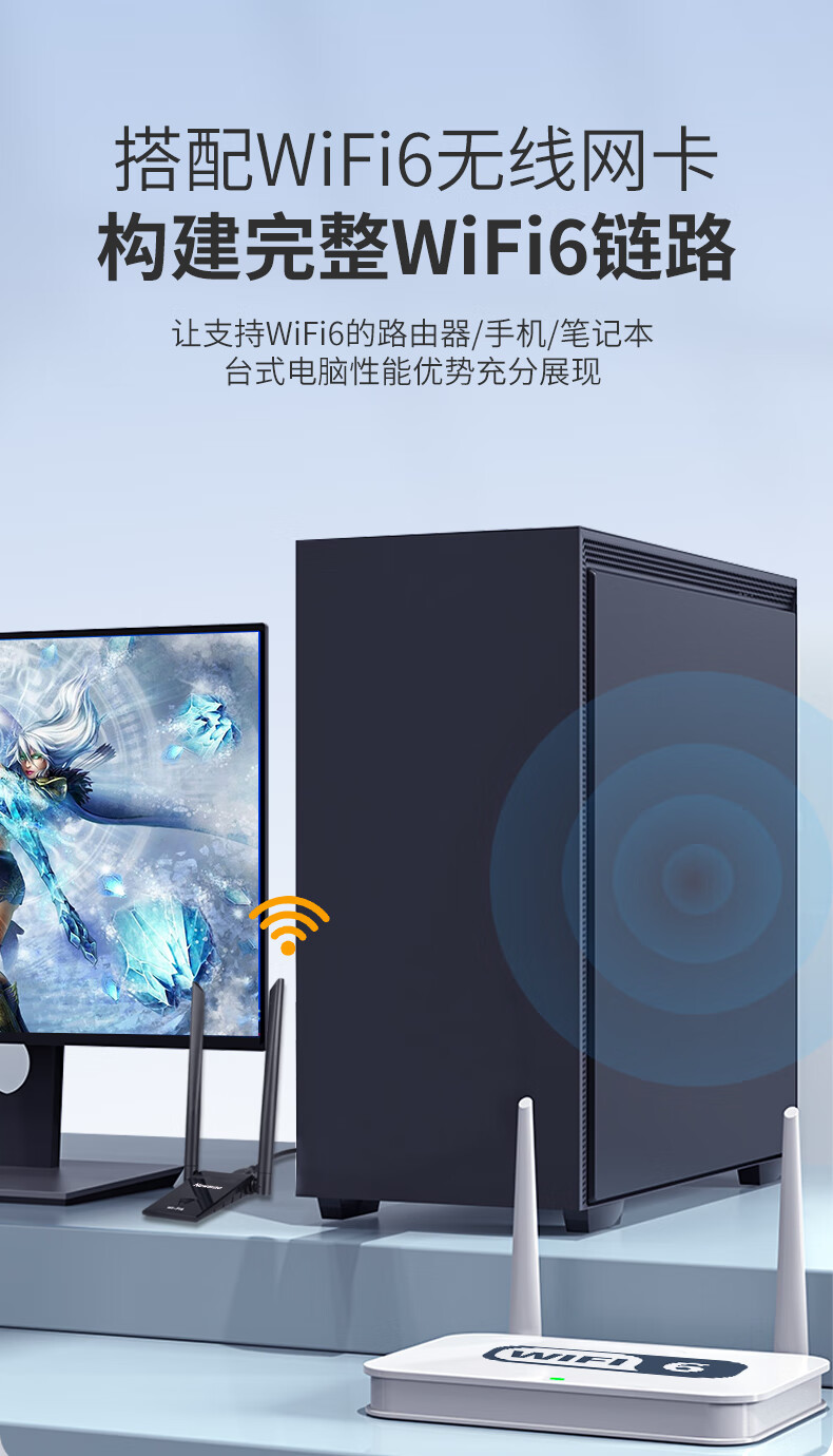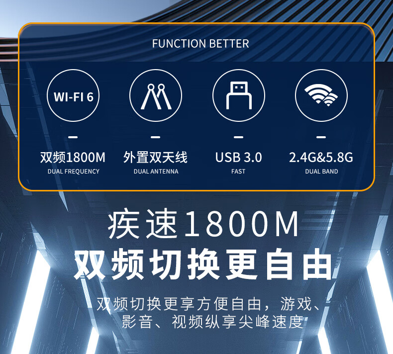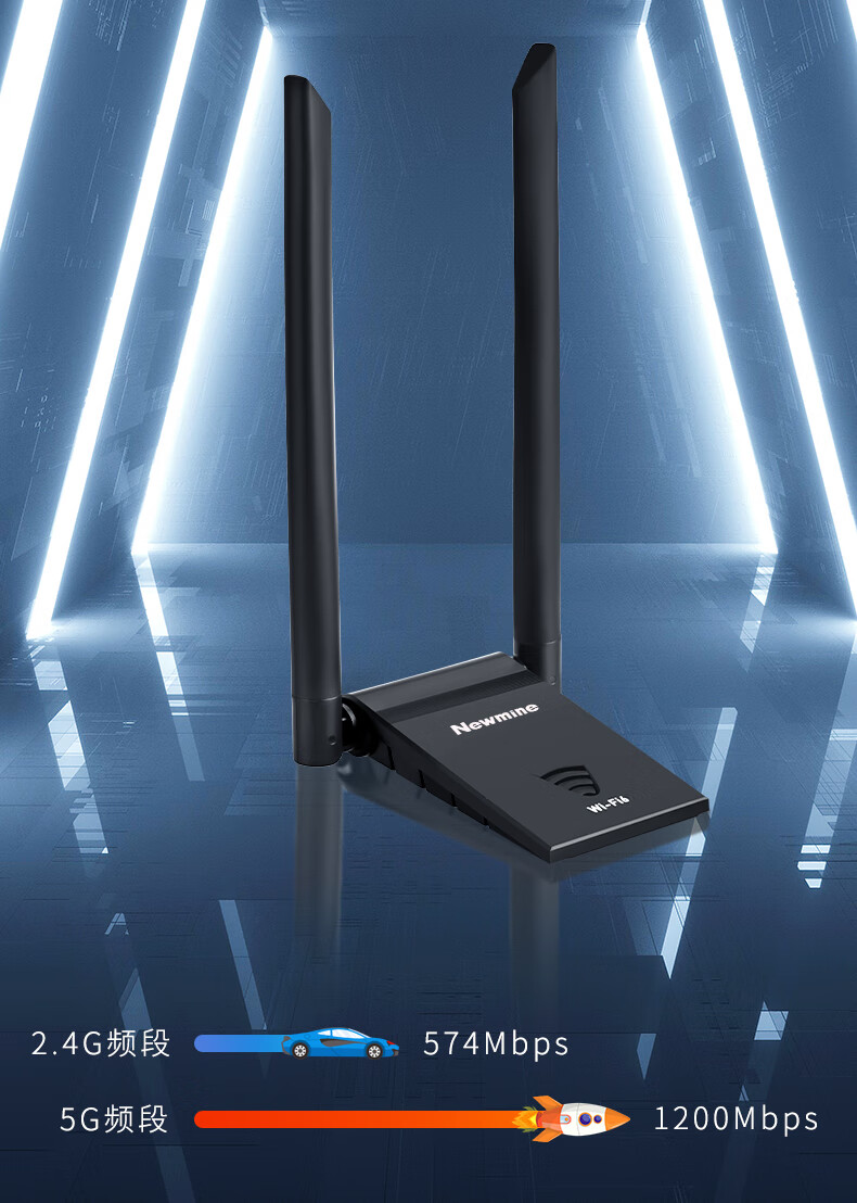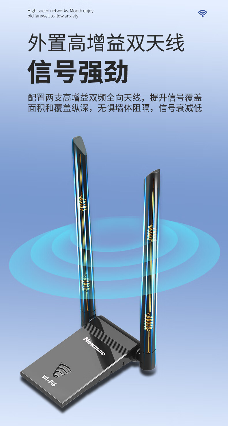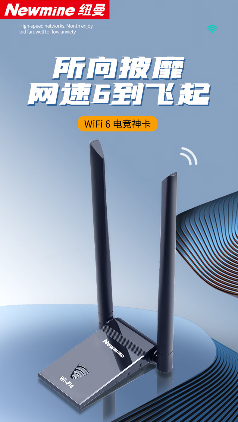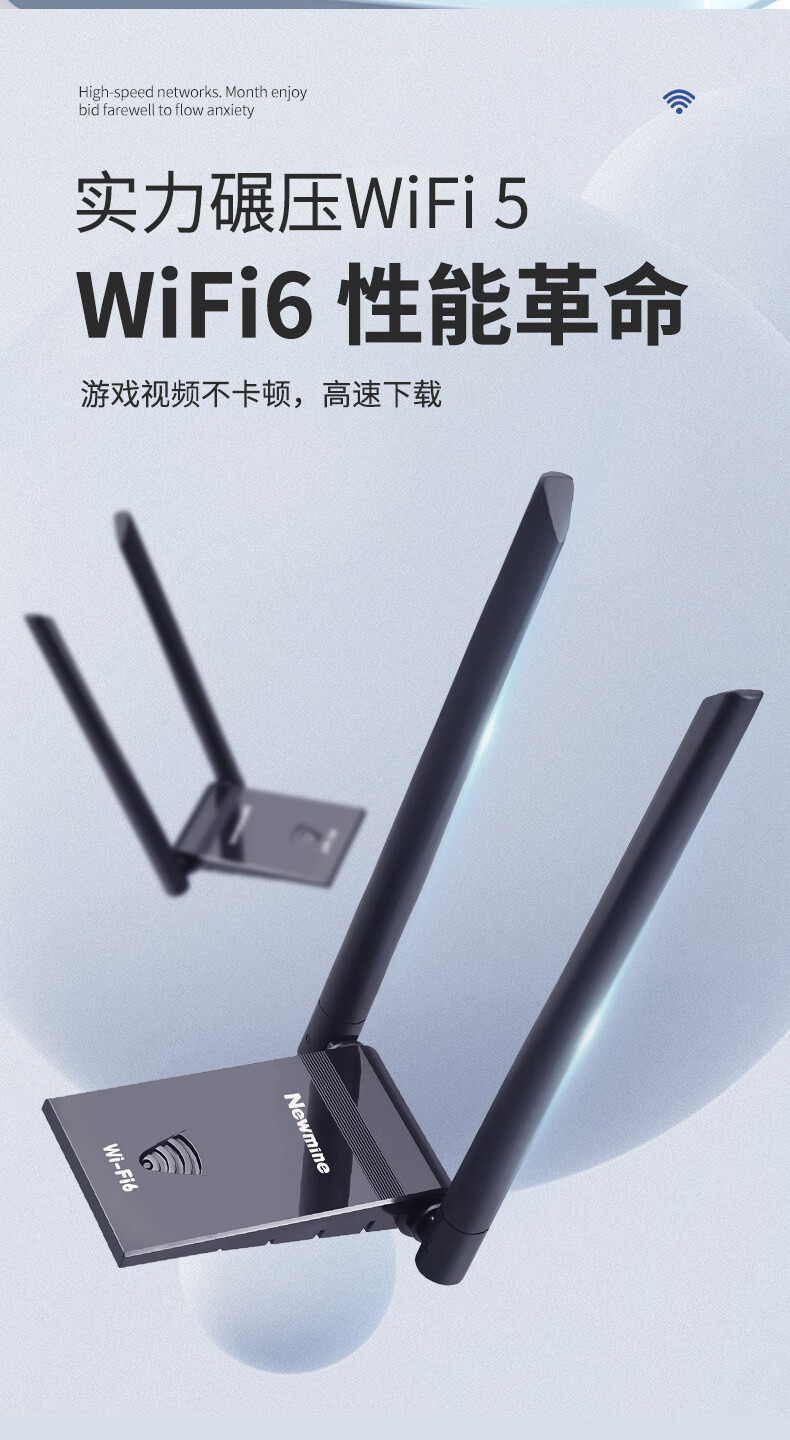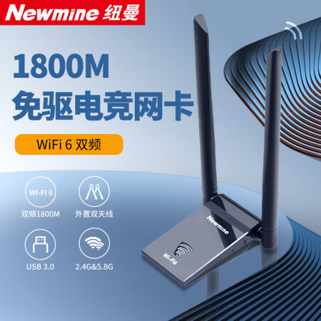 纽曼(Newmine)D-1801 WIFI6无线网卡 5G双频1800M千兆电竞无线网卡 USB接口笔记本台式机无线接收器随身wifi发射器 延长 黑色