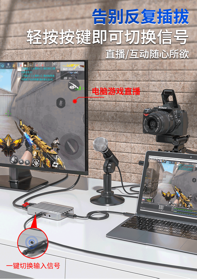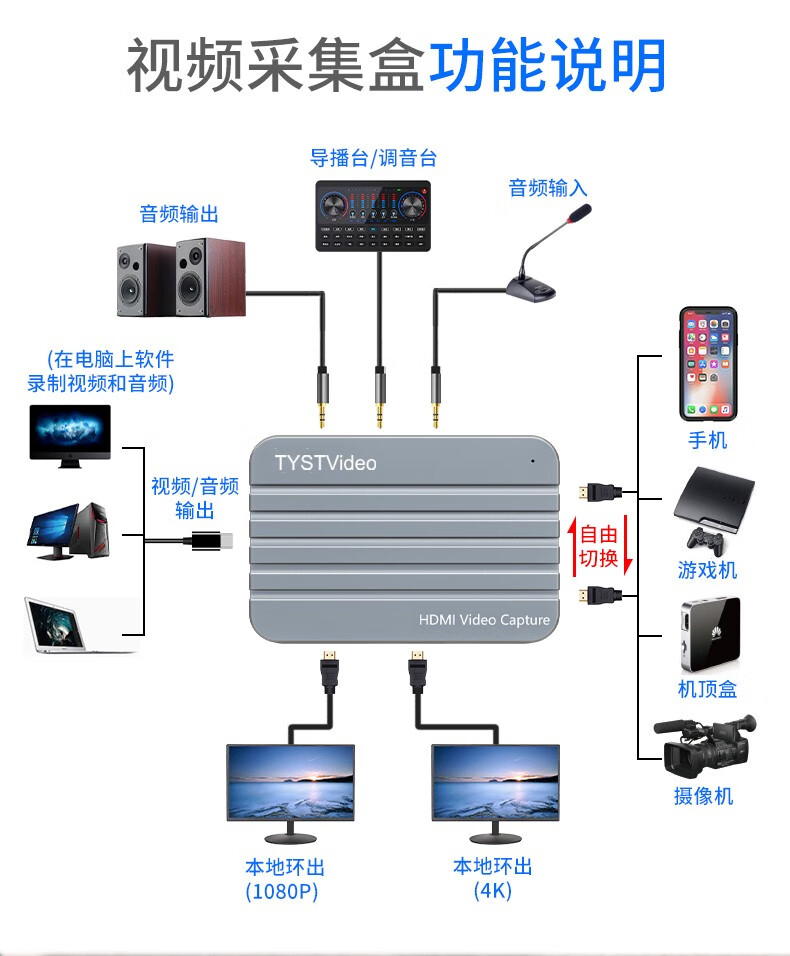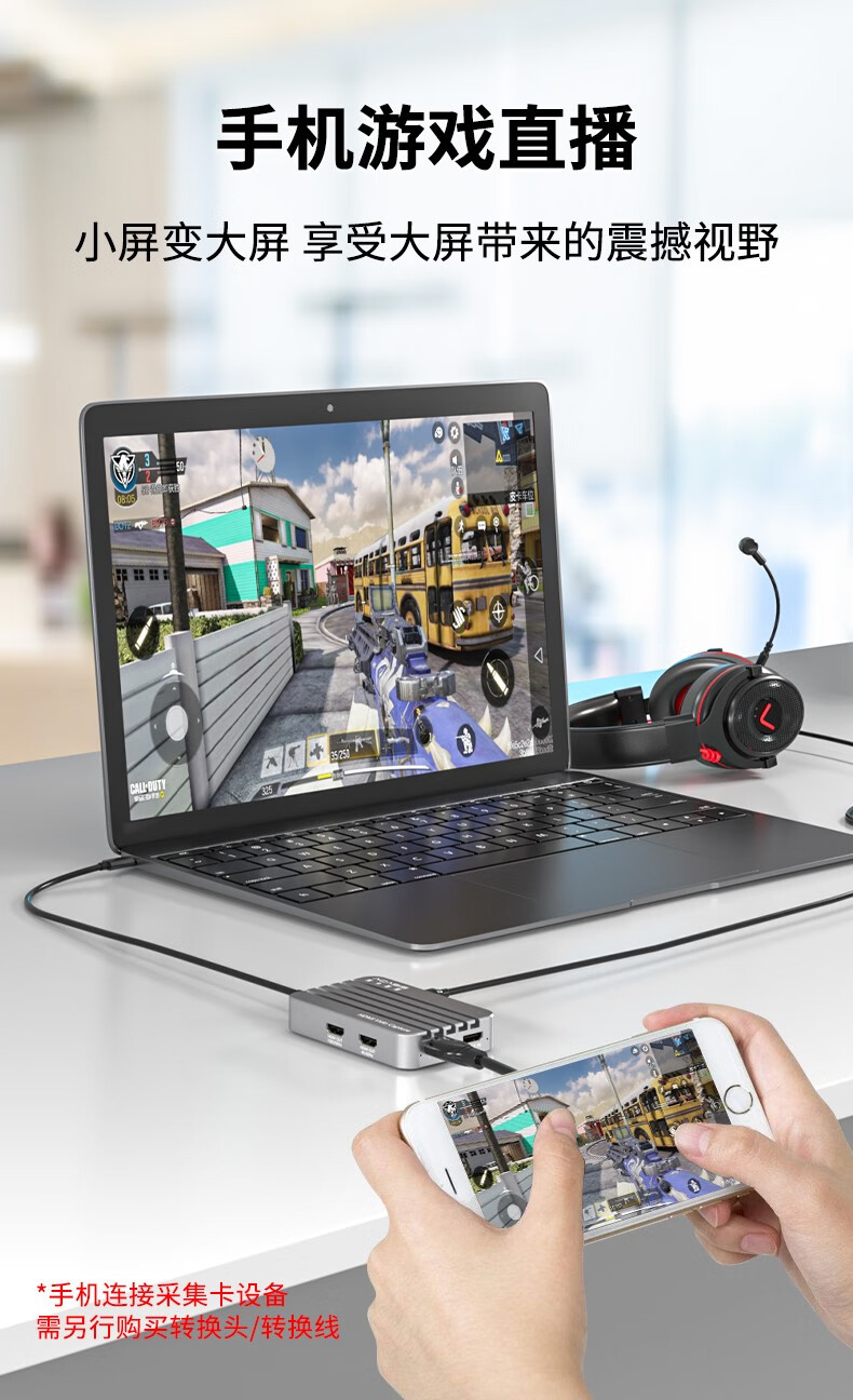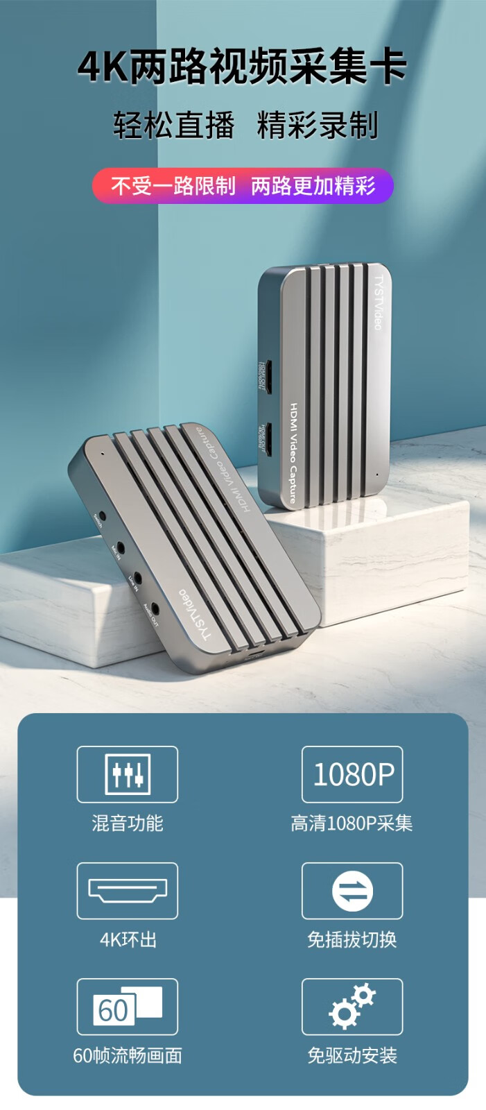 天影视通 外置采集卡2路HDMI线4K视频采集卡60帧流畅画面外置视频采集卡2路HDMI TY-U3HDH(2路HDMI)