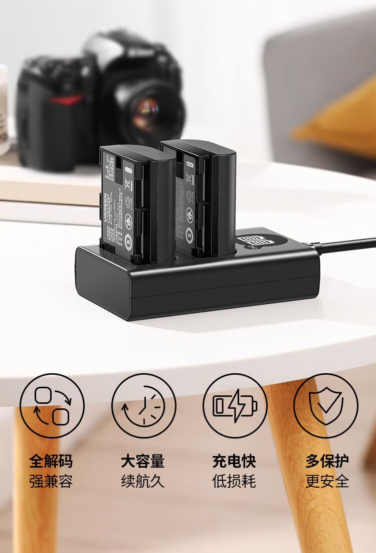 绿联LP-E6 相机电池充电器套装50664 适用佳能EOS 90D 80D 70D 7D2 60D 6D2 5D3 5D2 5DSR 5D4单反数码相机
