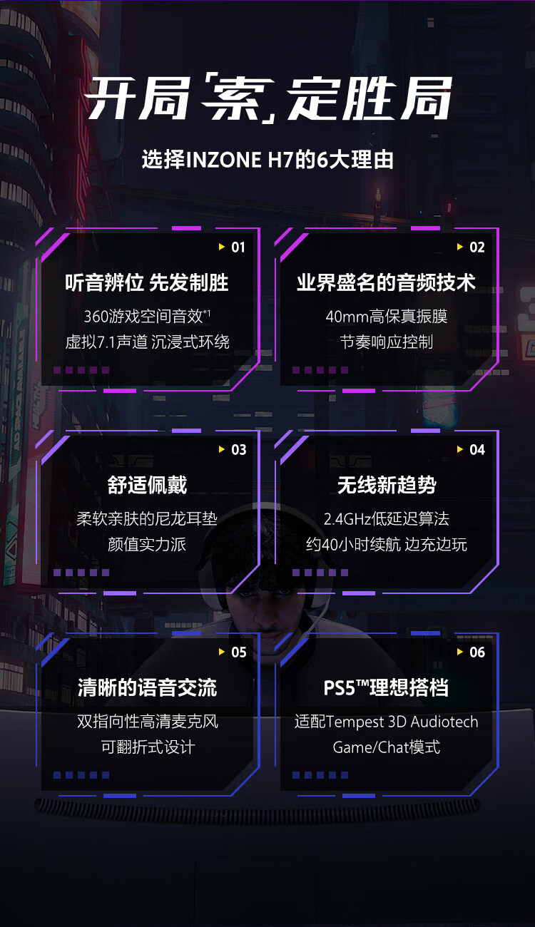 索尼(SONY)INZONE H7 高端电竞耳机 无线蓝牙 头戴式 2.4GHz 虚拟7.1声道 高清麦克风 ps5适用