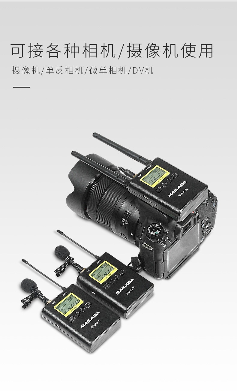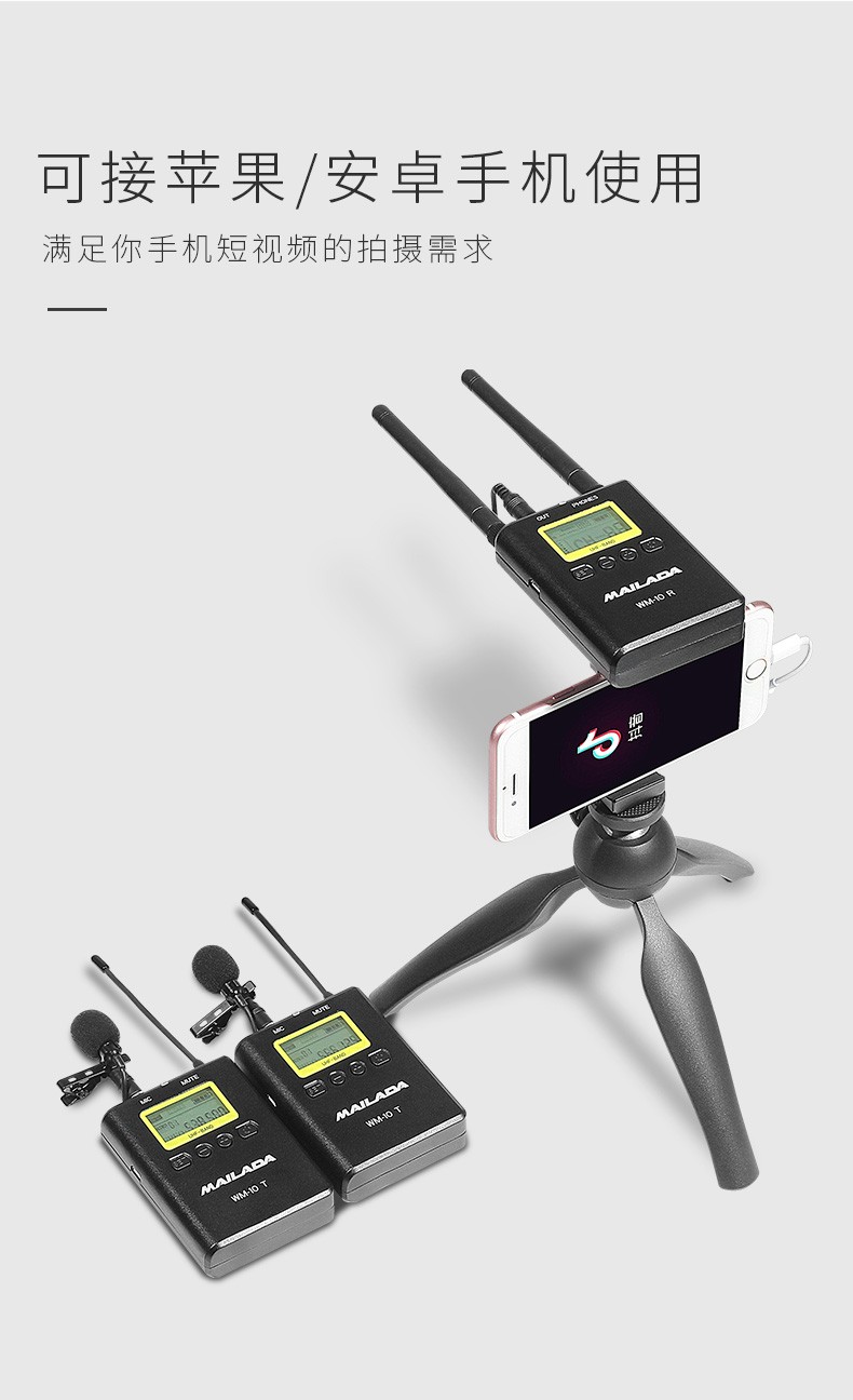 麦拉达(mailada)WM10小蜜蜂无线麦克风领夹式话筒专业摄像机单反准专业级采访录音手机直播 【金属外壳】一拖一