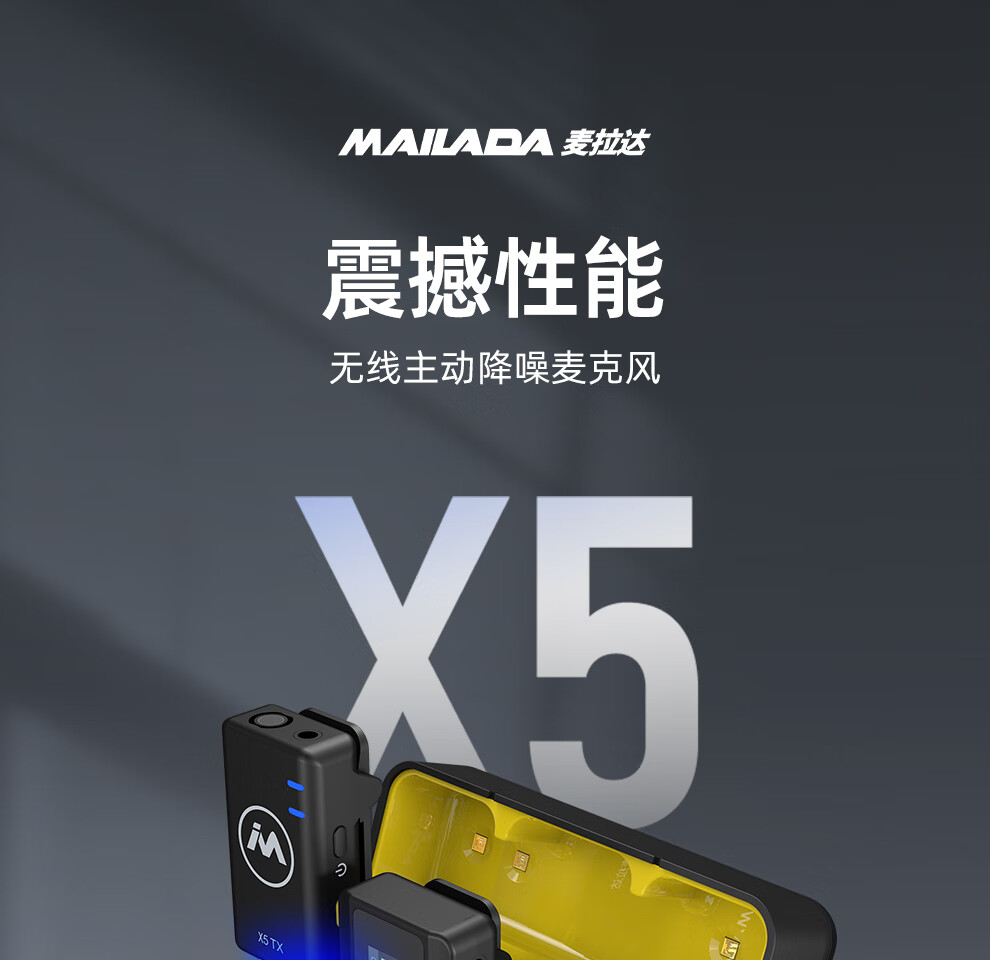 麦拉达(mailada)X5I无线小蜜蜂收音麦克风一拖二小蜜蜂vlog采访户外直播手机收音麦录音设备 一拖二