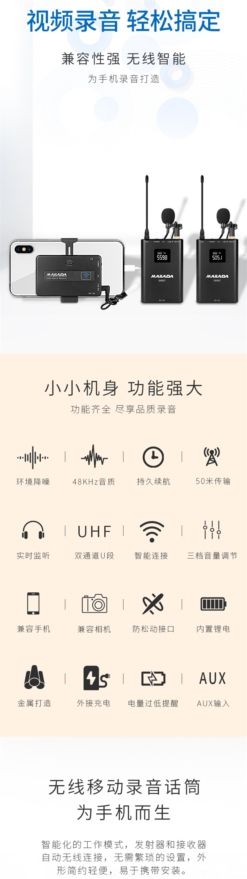 麦拉达(mailada) S600PRO 一拖二无线领夹式麦克风 可充电话筒 内置锂电池