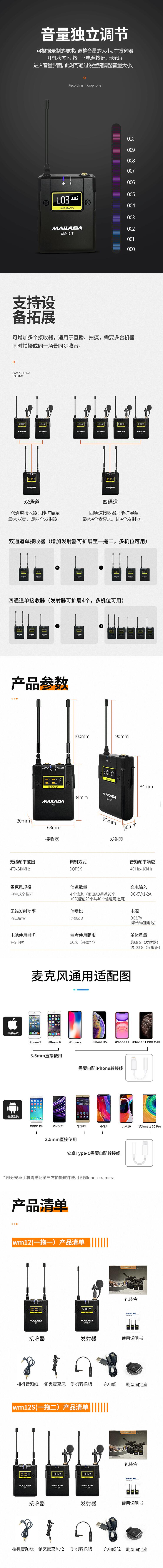 麦拉达(mailada)WM12S 无线领夹话筒一拖二无线领夹式麦克风