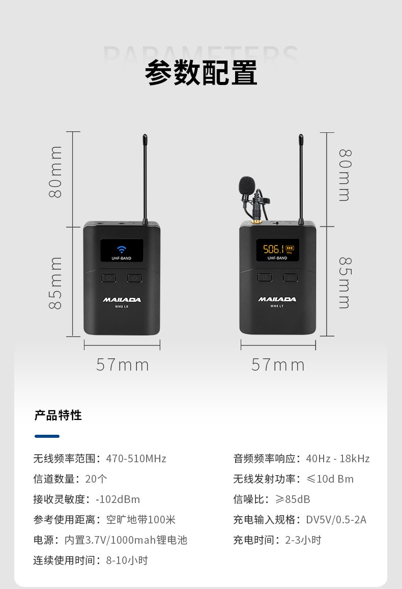 麦拉达(mailada)wm8S小蜜蜂无线麦克风领夹式专业摄像机收音话筒单反采访录音街拍手机直播无线麦克风 一拖二领夹式麦克风
