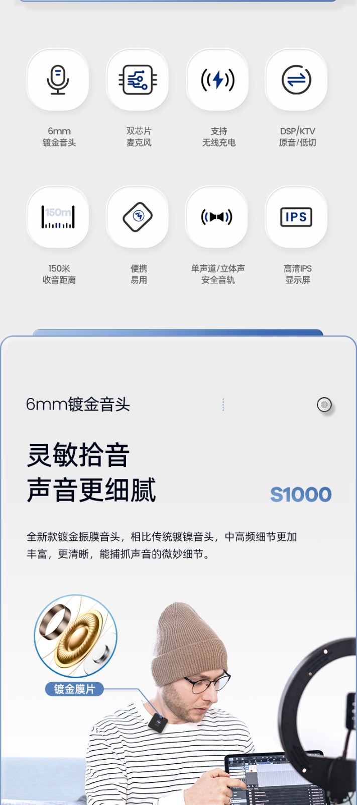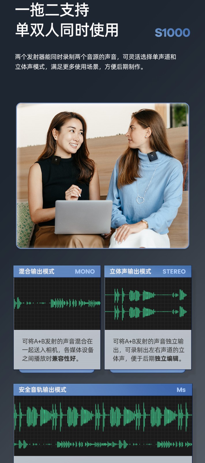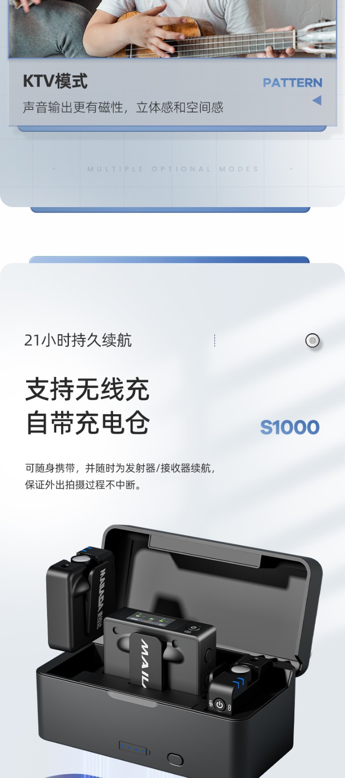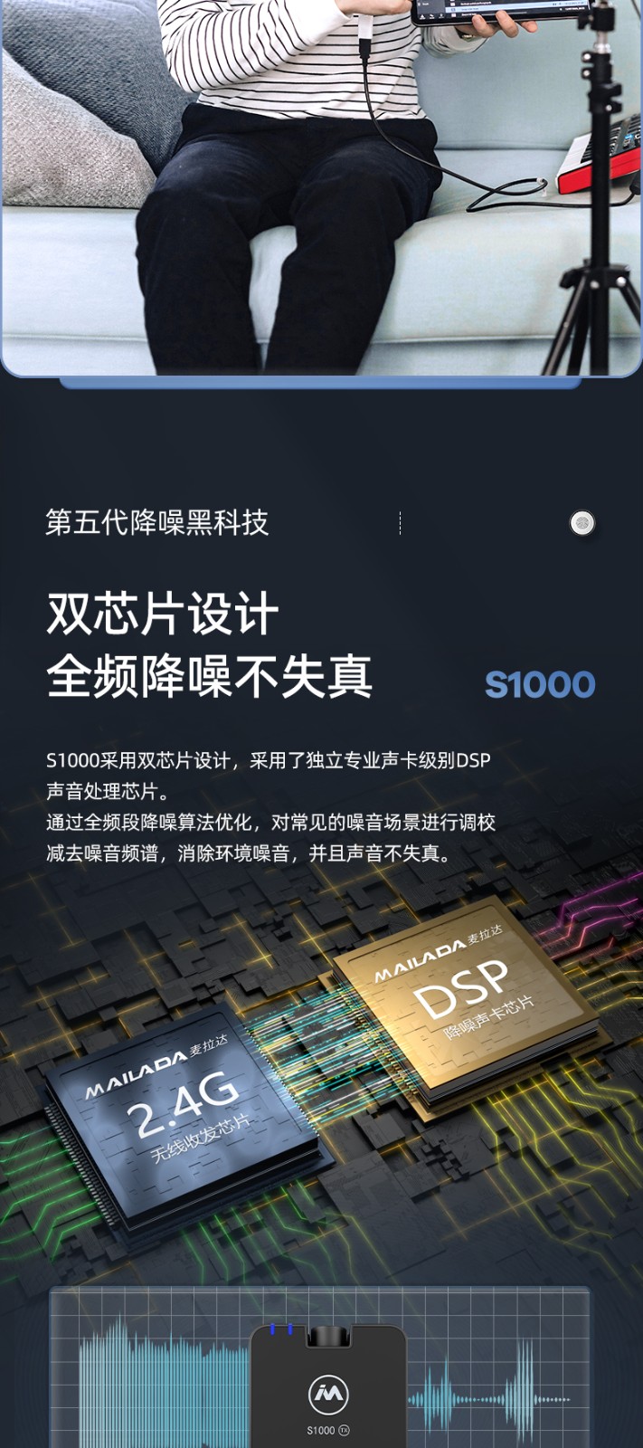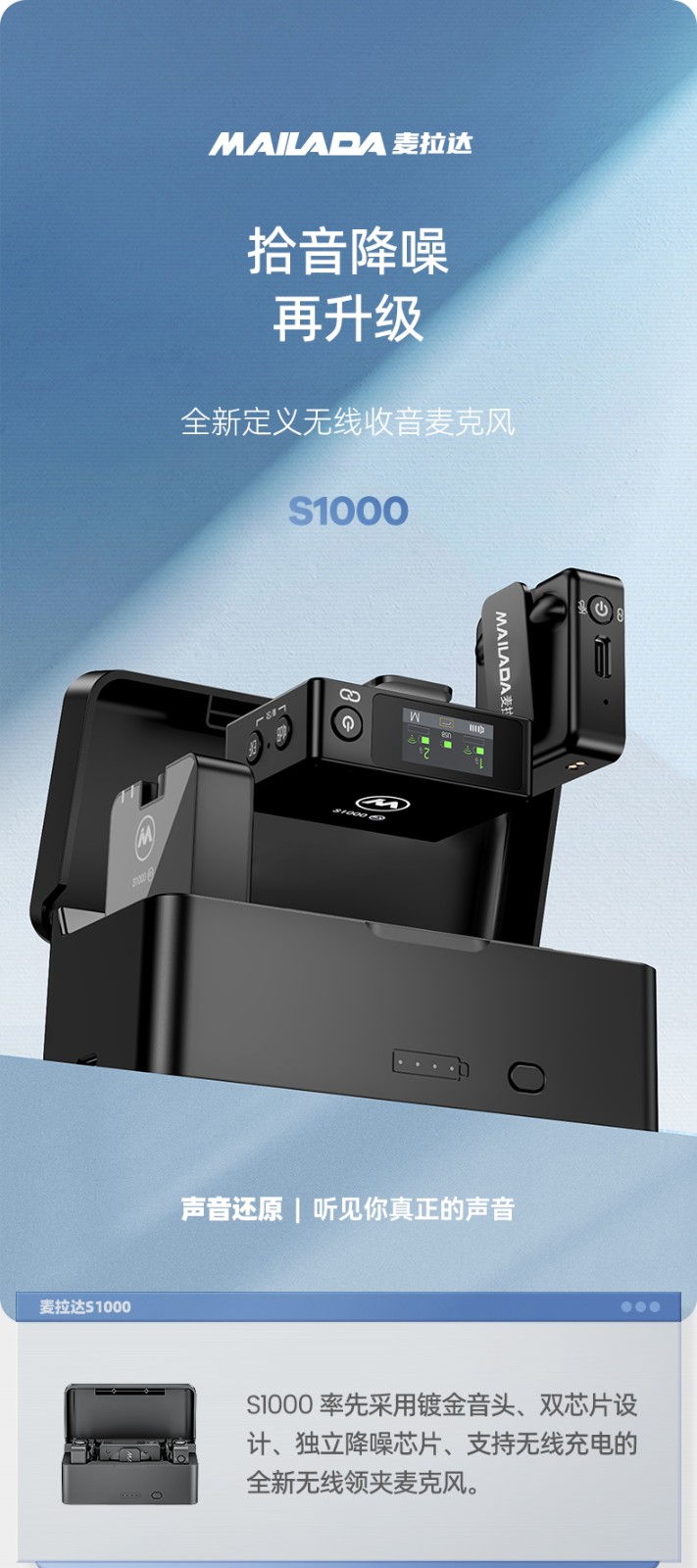 麦拉达(mailada)S1000领夹式无线小蜜蜂手机直播麦克风短视频电脑录音话筒单反收音器设备 S1000PRO一拖二无线充电盒