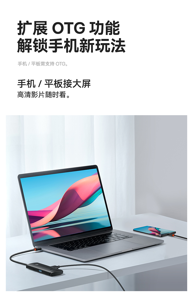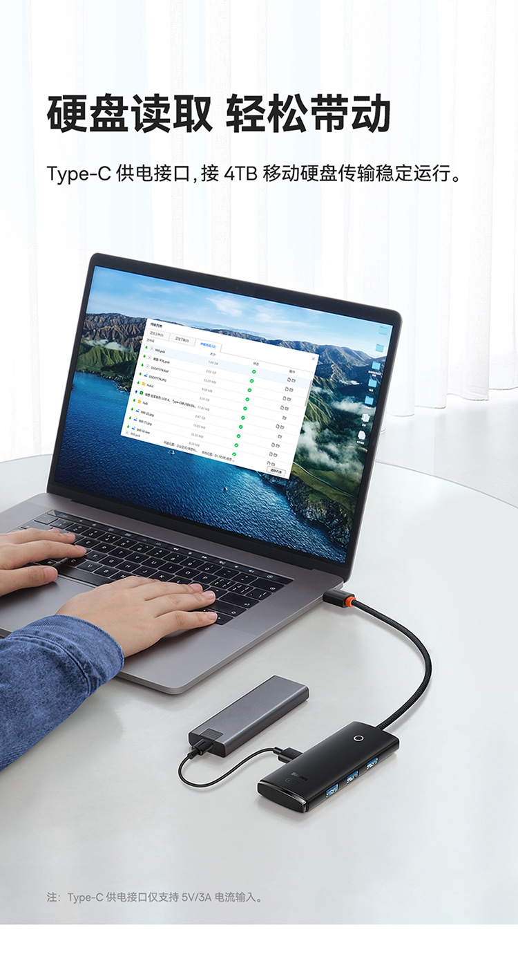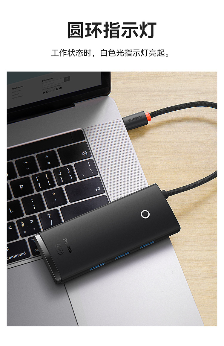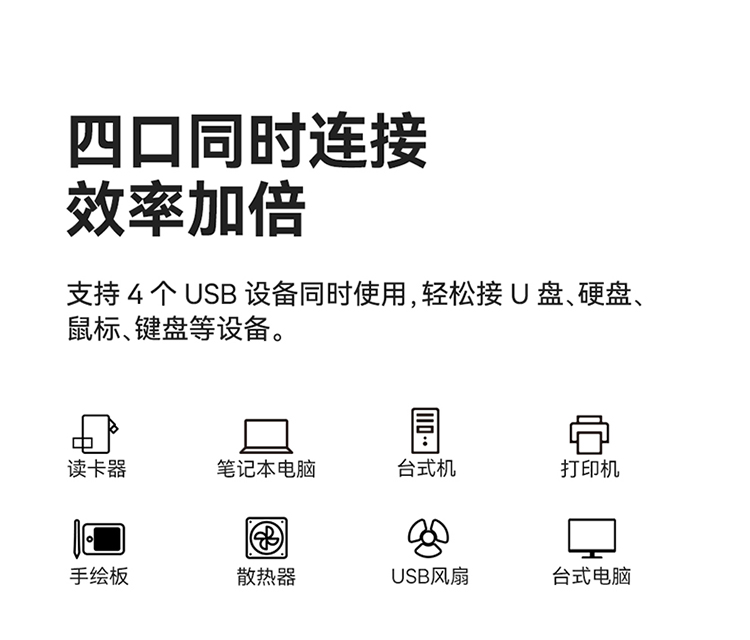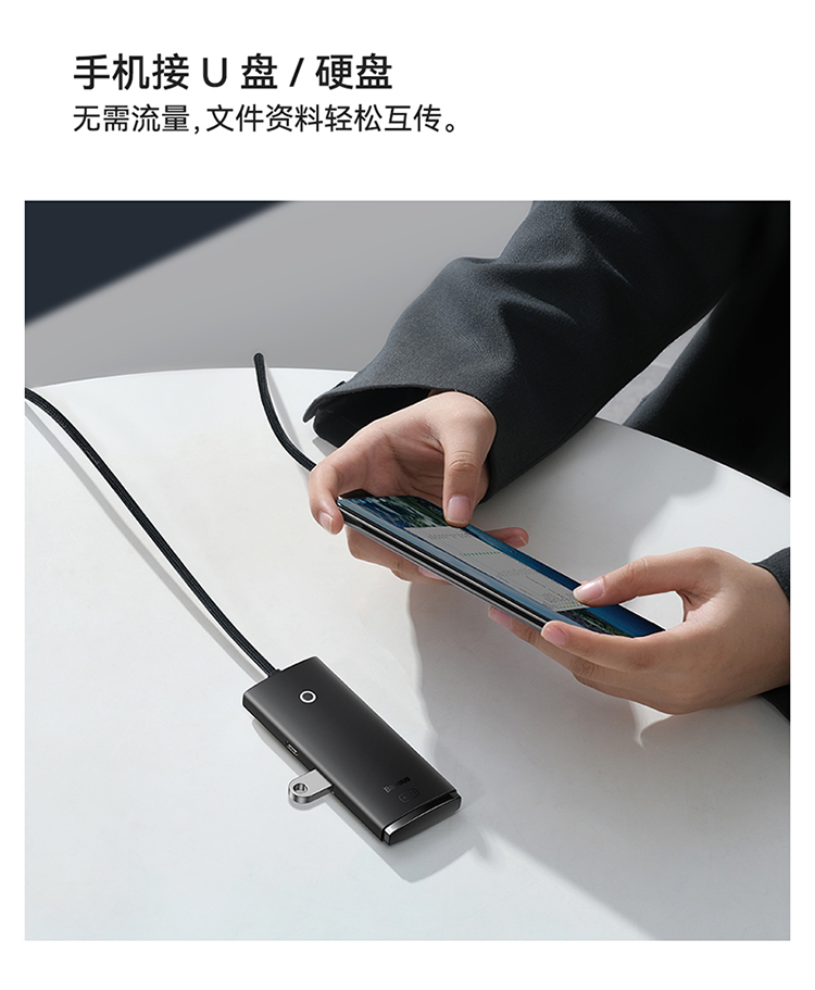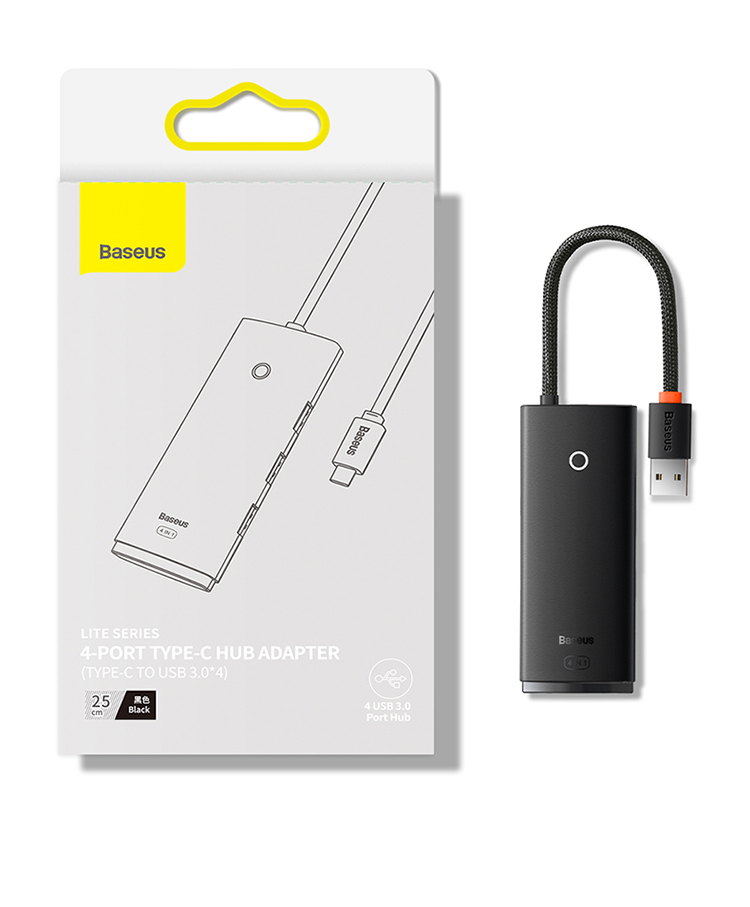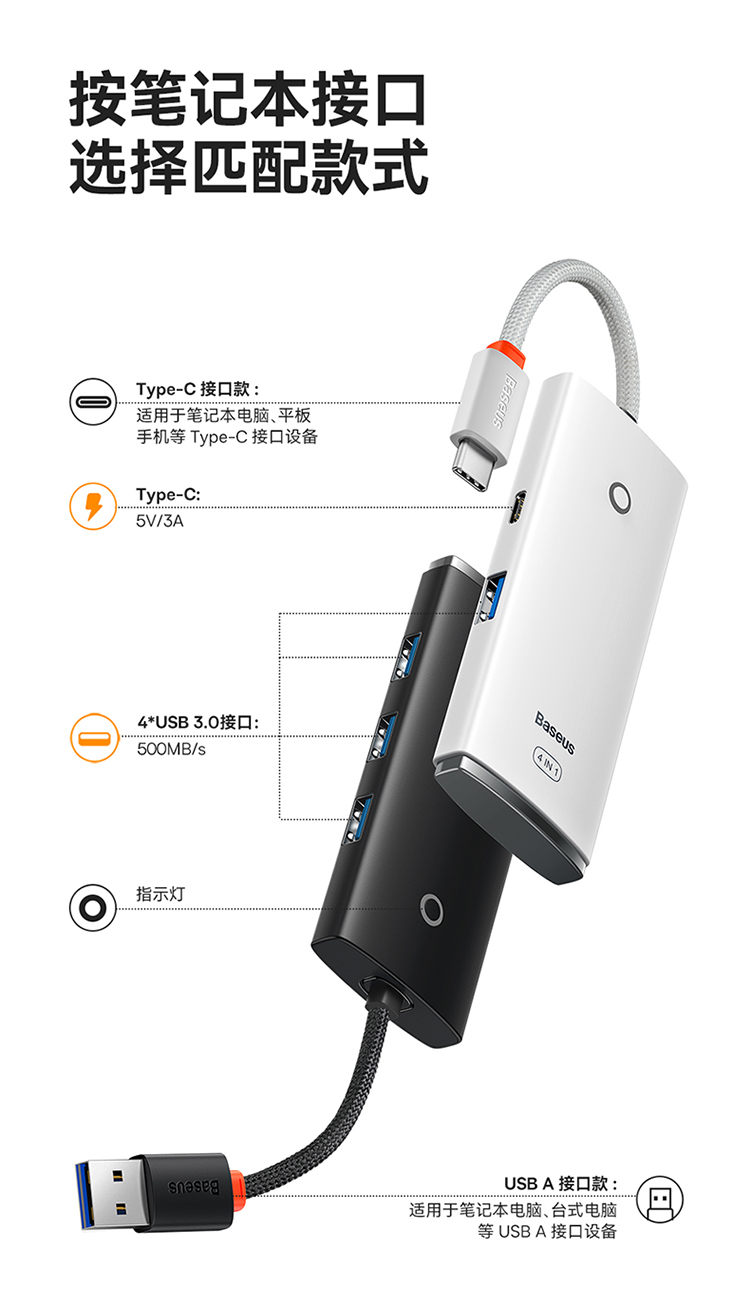 倍思 USB3.0分线器转换器 适用苹果华为笔记本电脑通用转接头 4口USB3.0 HUB 2米黑色