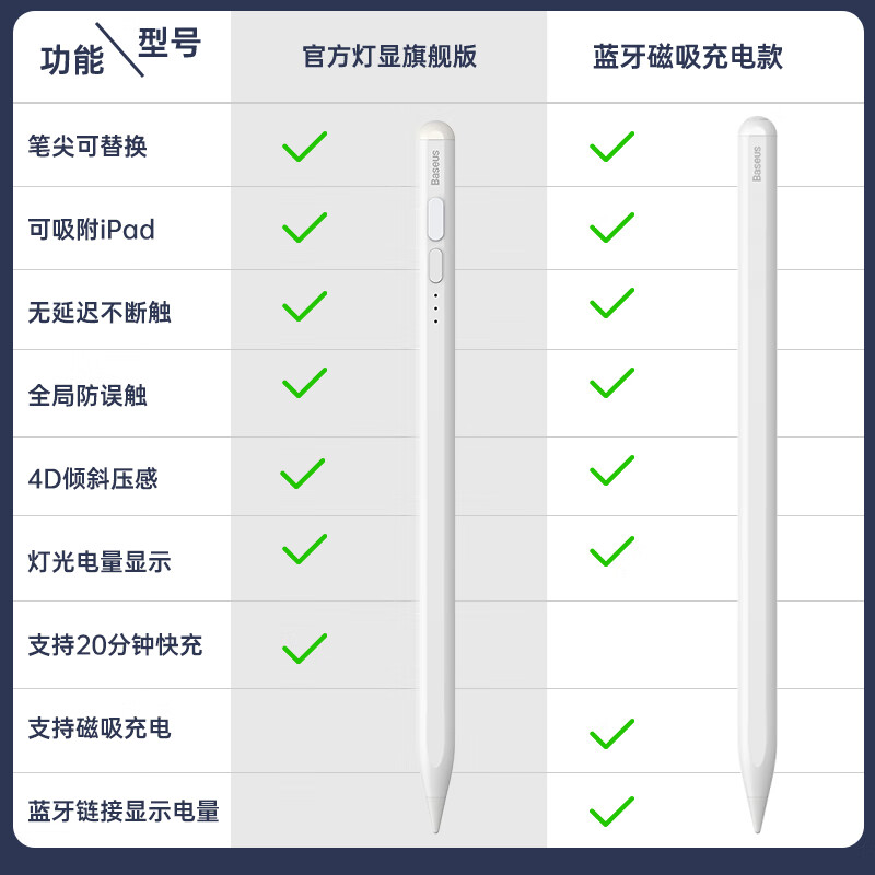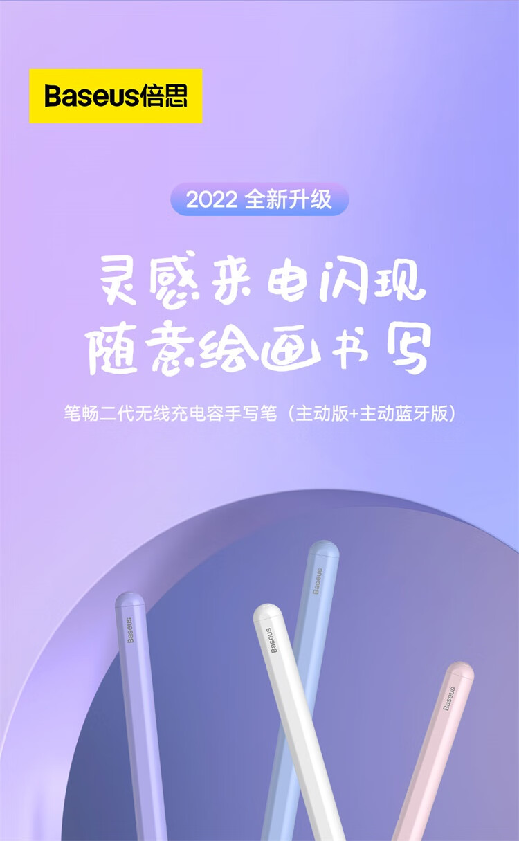 倍思 电容笔 平板ipad笔 apple pencil二代 适用苹果Pro/iPad/air/mini 蓝牙磁吸充电款 白色
