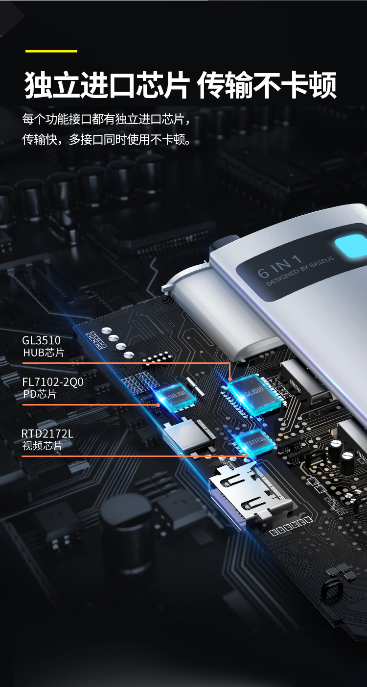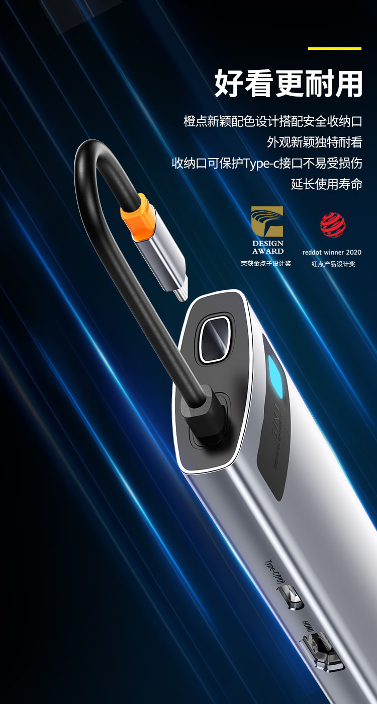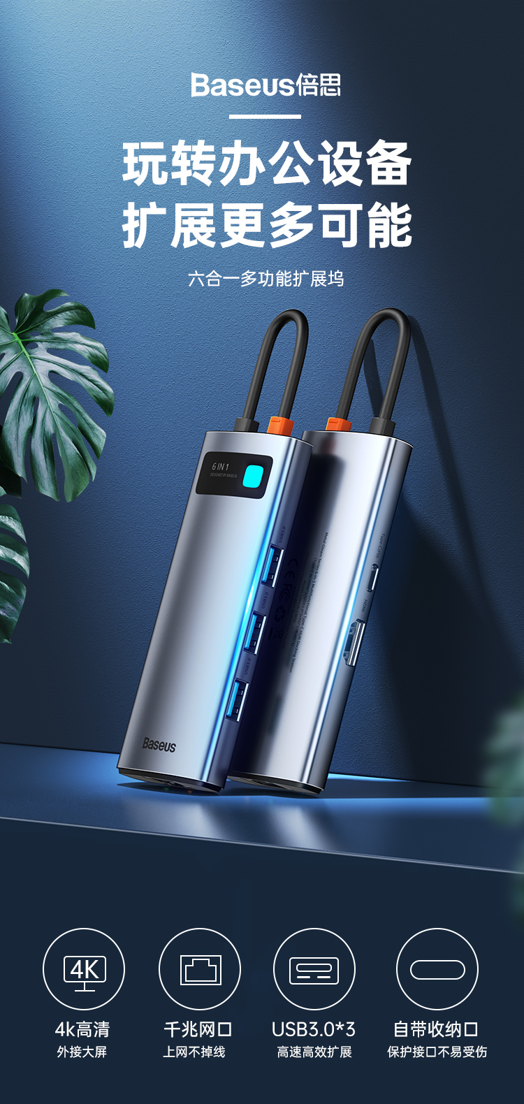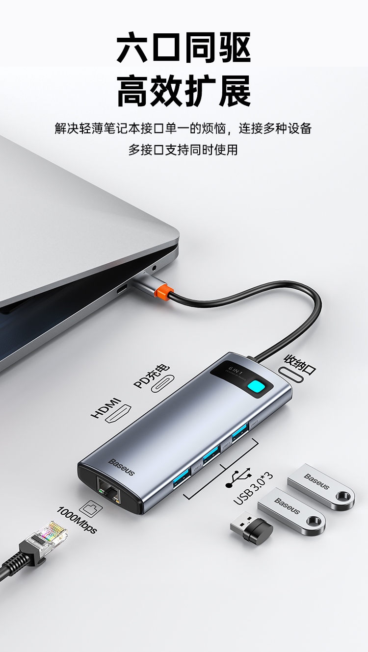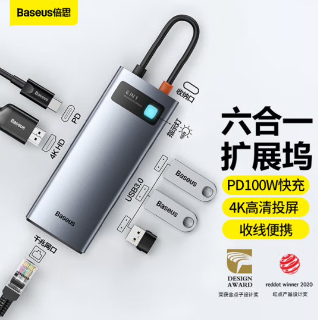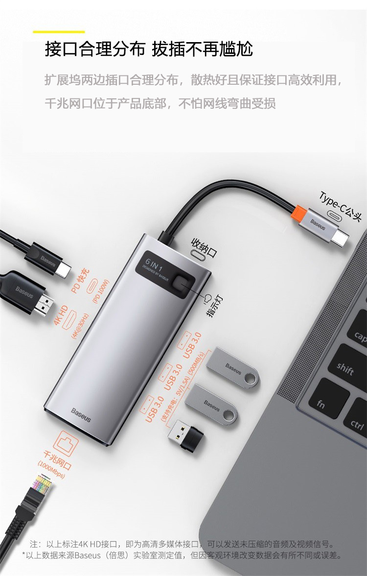 倍思 Type-C扩展坞拓展坞USB3.0千兆网口转接头HUB分线转换器4K高清PD充电通用雷电3/4苹果华为联想笔记本电脑