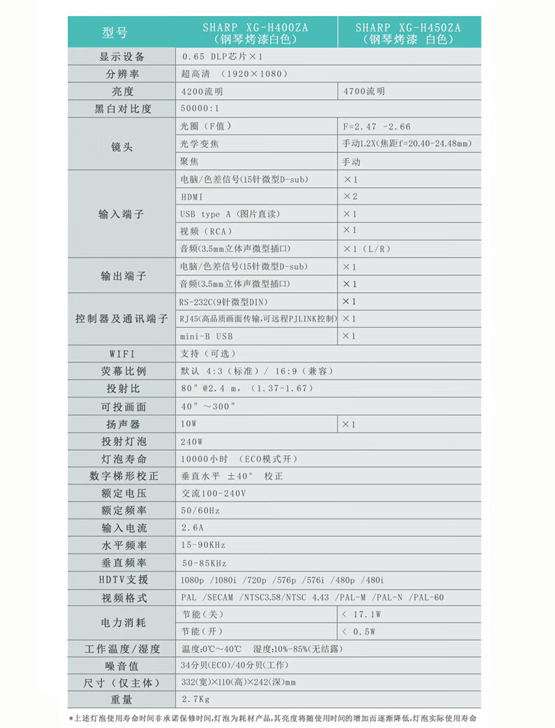 | 灯泡寿命(h) | 10000 |