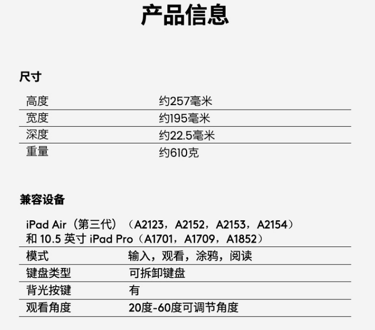 罗技(Logitech)Combo Touch 平板电脑键盘保护套 适用于iPad Air第三代和10.5英寸iPad Pro