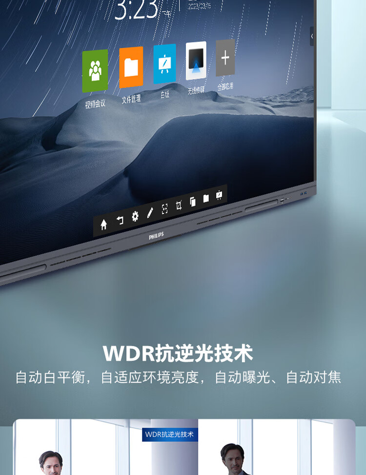 飞利浦(PHILIPS)65BDL4352T 会议平板一体机65英寸智能触控屏4K视频会议电视内置摄像头麦克风商显大屏+支架+I5OPS