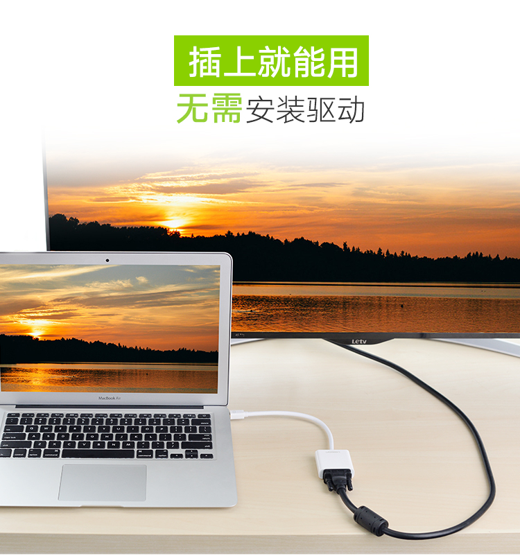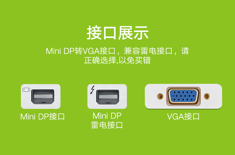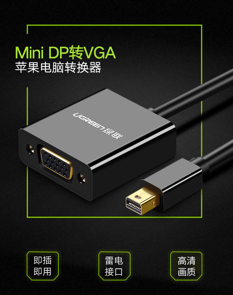绿联10459 Mini DP转VGA转换器线 高清雷电转接头适配器 适用微软苹果Mac笔记本电脑连接投影仪显示器 黑