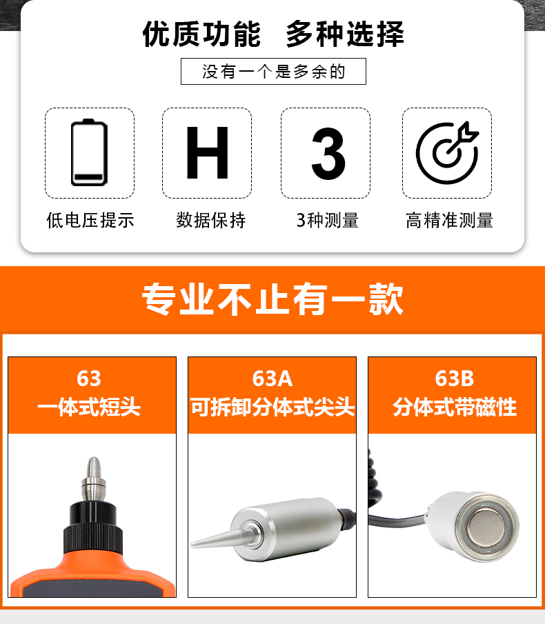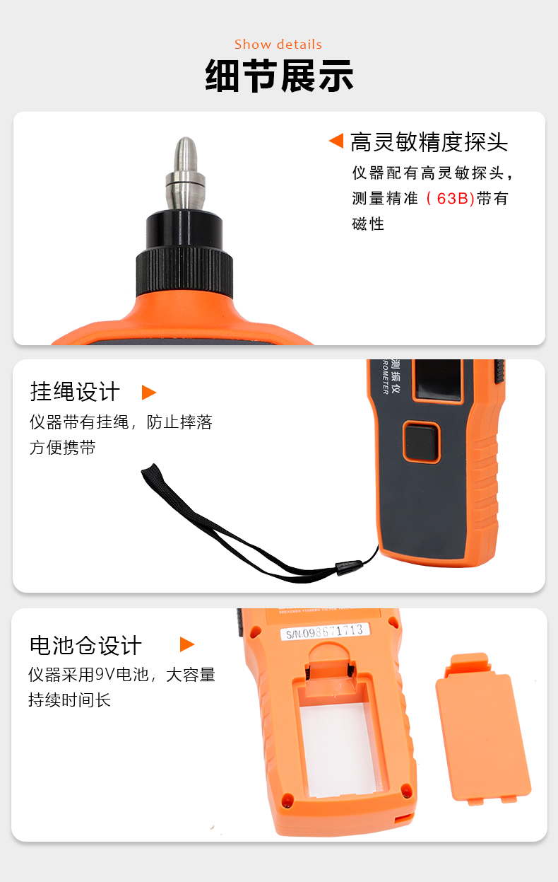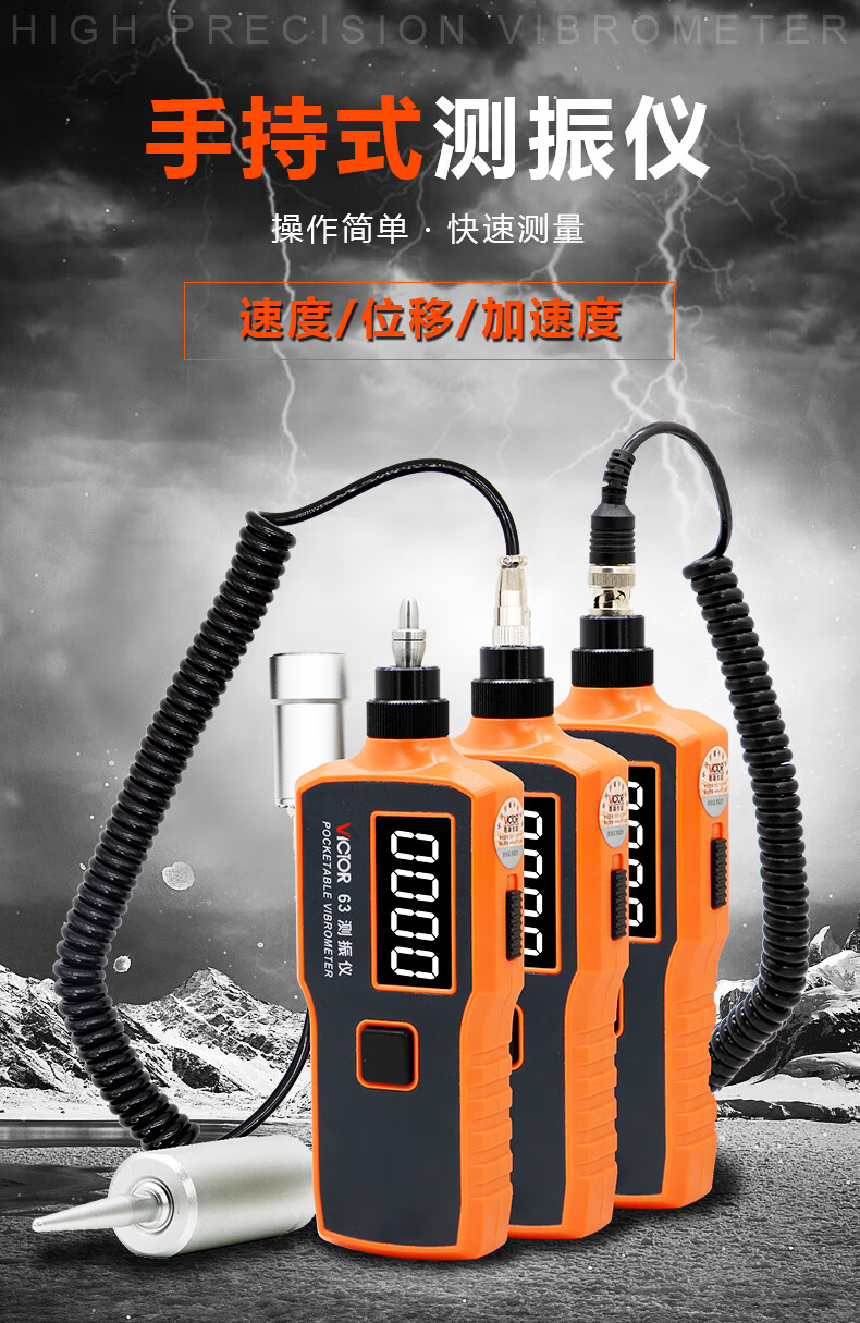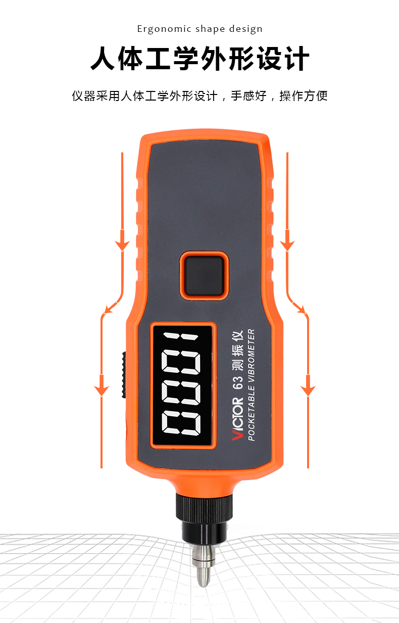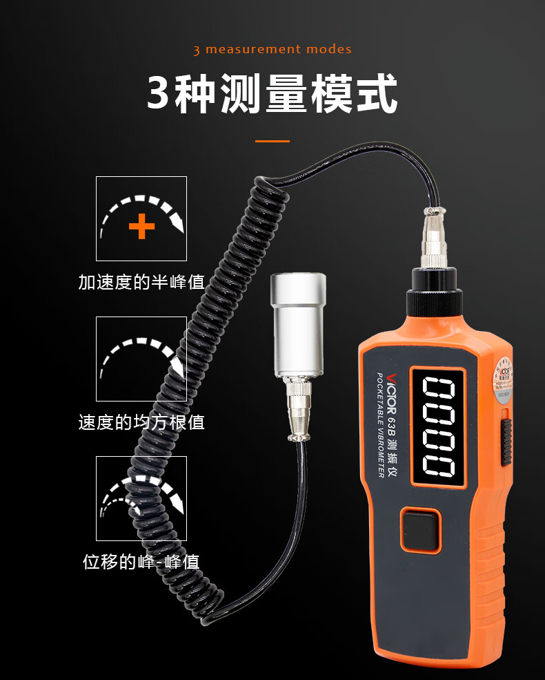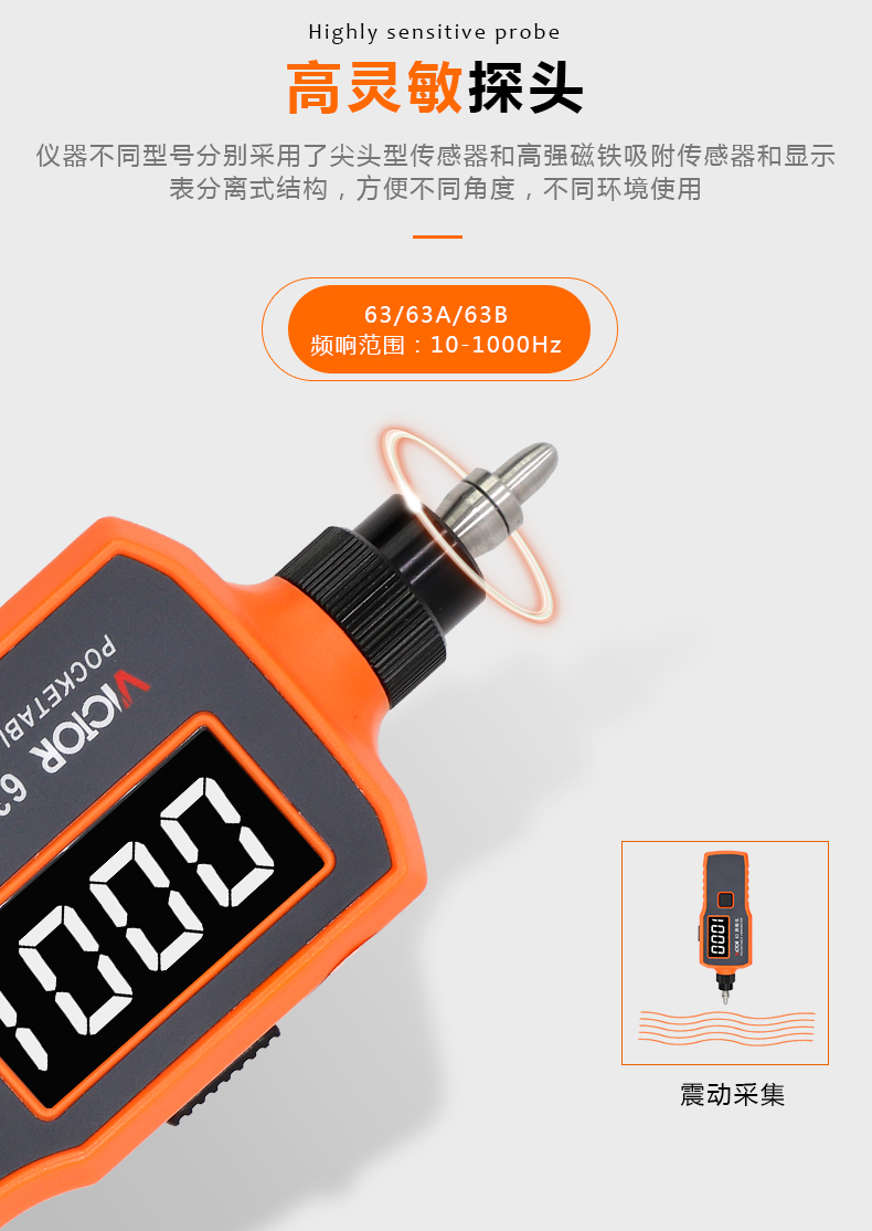 胜利仪器(VICTOR)数字测振仪 测震仪 分体式 尖头 振动测试仪 VC63A