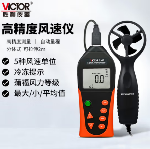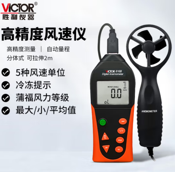 胜利仪器(VICTOR)数字风速仪 VC816B 风速计 风速仪 风速风温测试仪 分体式