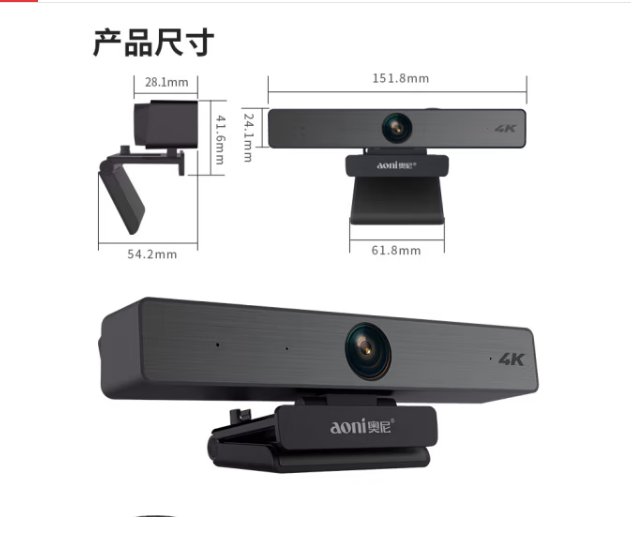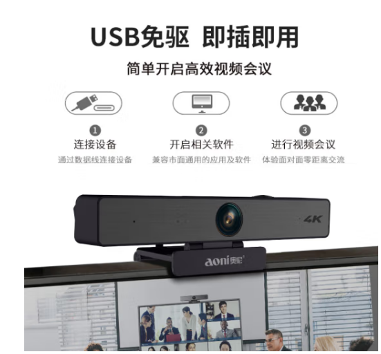 奥尼(aoni) C96 会议摄像头800万4K超清电脑摄像头大广角USB台式机笔记本电脑带降噪麦克风直播视频
