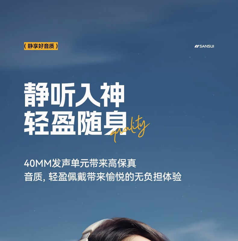 山水(SANSUI)TD8头戴式无线蓝牙耳机不入耳式运动音乐游戏降噪耳机超长待机适用于苹果华为黑色