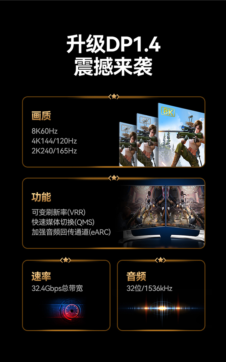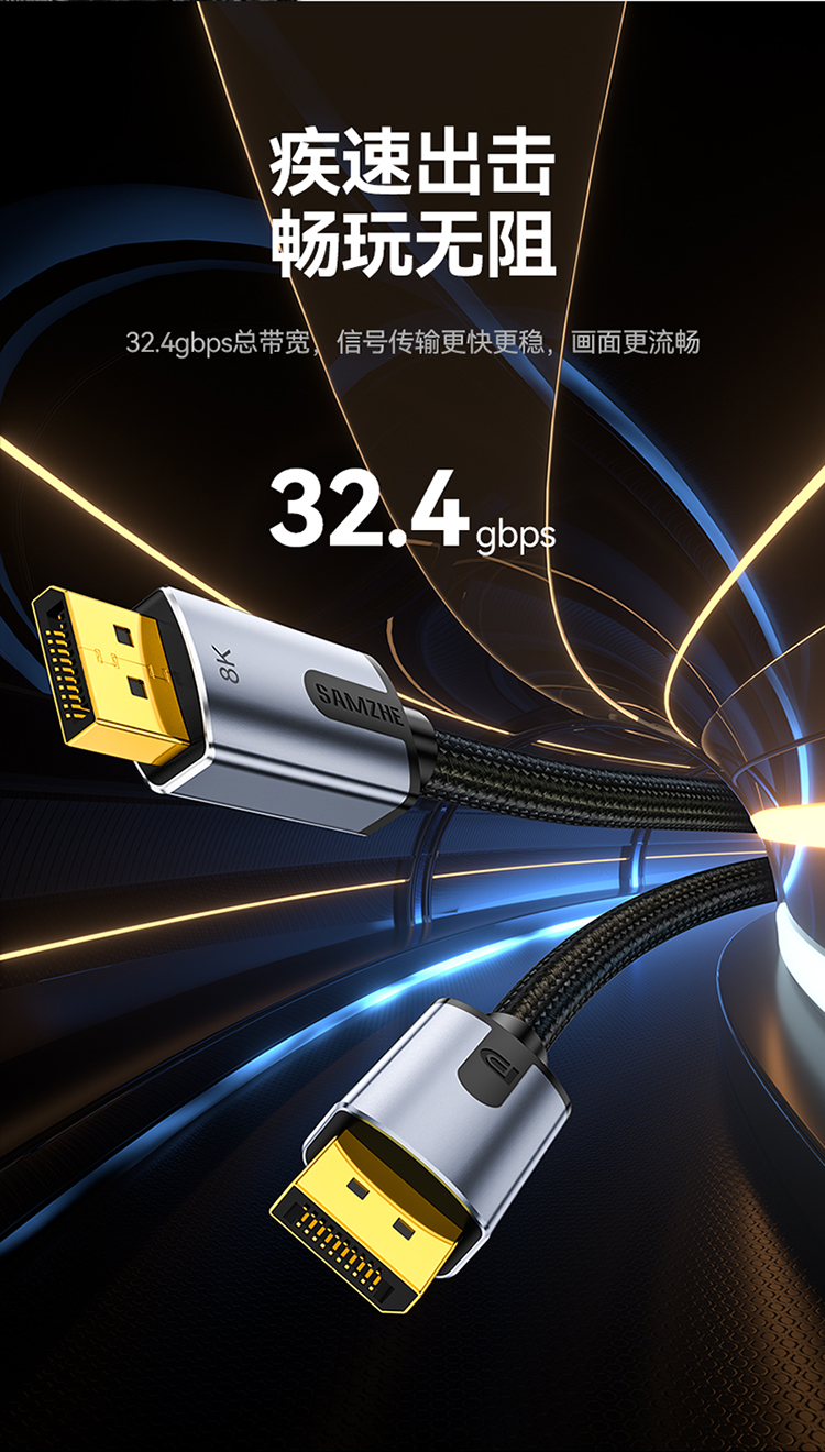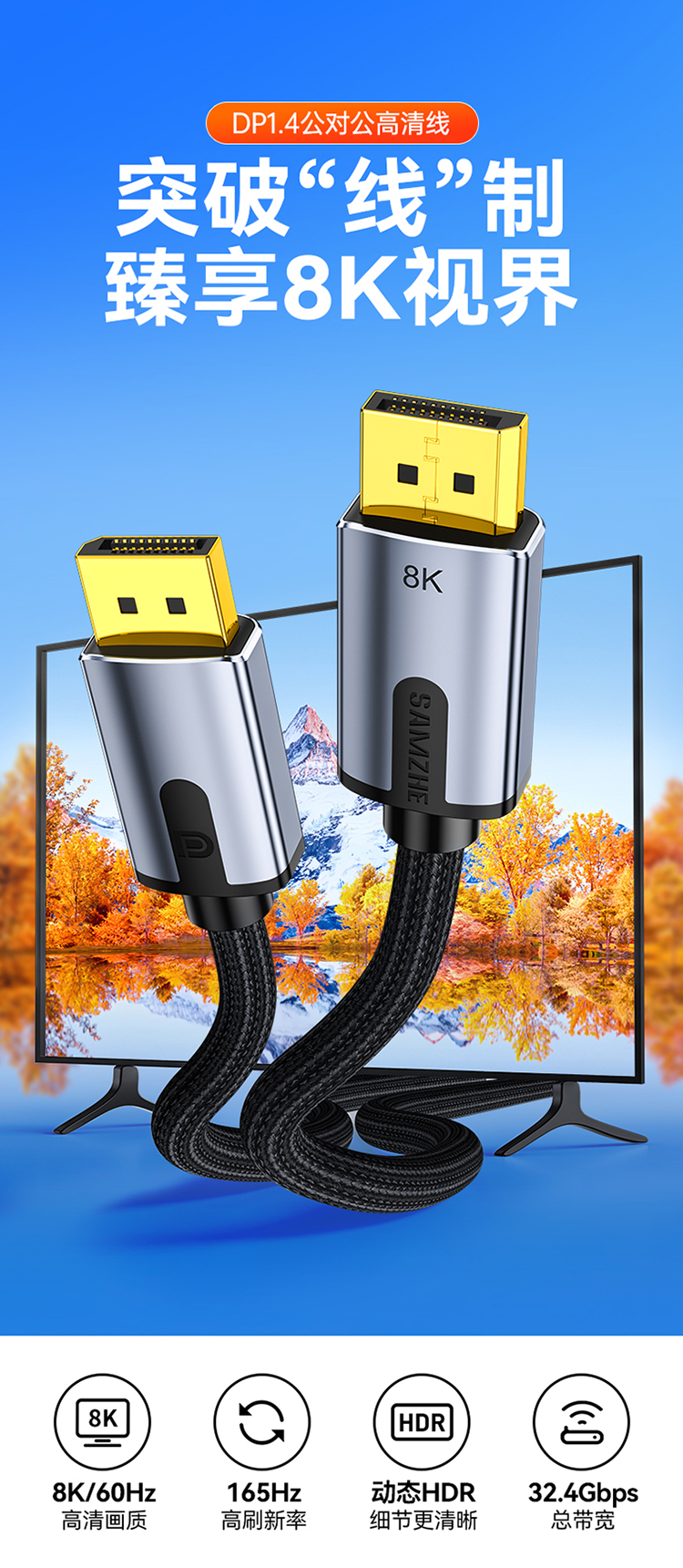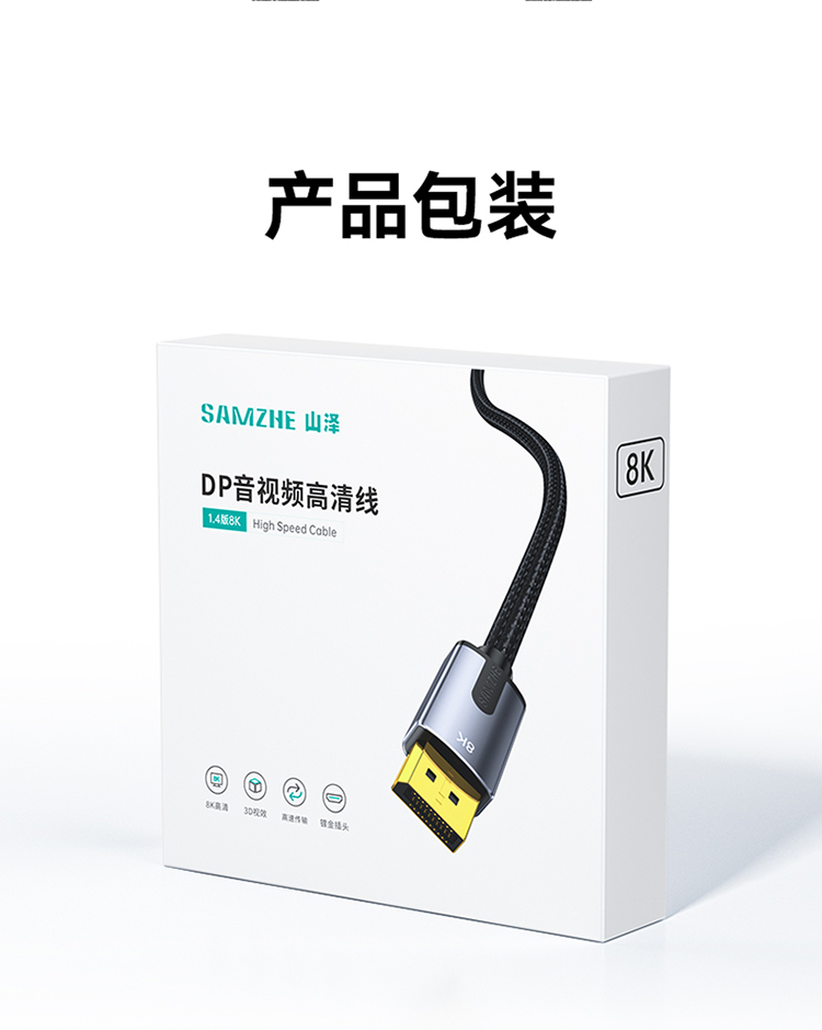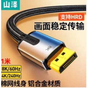 山泽(SAMZHE)DPO-10 DP线1.4版4K144Hz 2K165Hz 8K高清DisplayPort公对公连接线视频线 1米