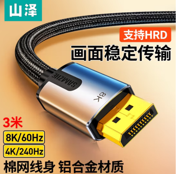 山泽(SAMZHE)DPO-30 DP线1.4版4K144Hz 2K165Hz 8K高清DisplayPort公对公连接线视频线 3米