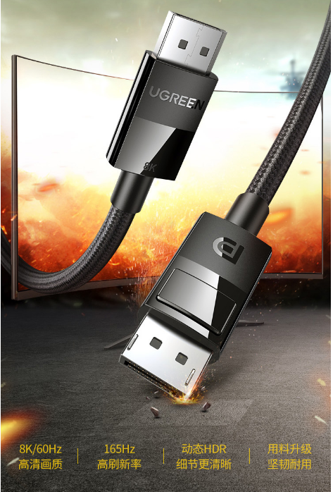 绿联 UGREEN 80390 DP线1.4版 DP114 4K144Hz/8K60Hz高清视频线 DisplayPort公对公连接线 1米