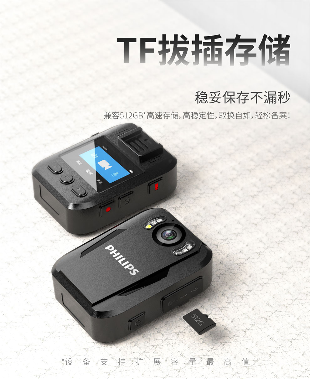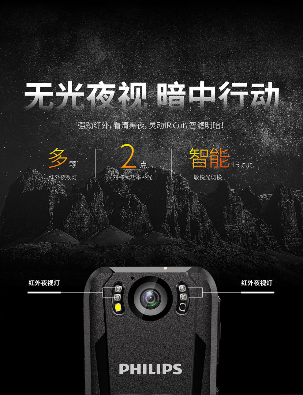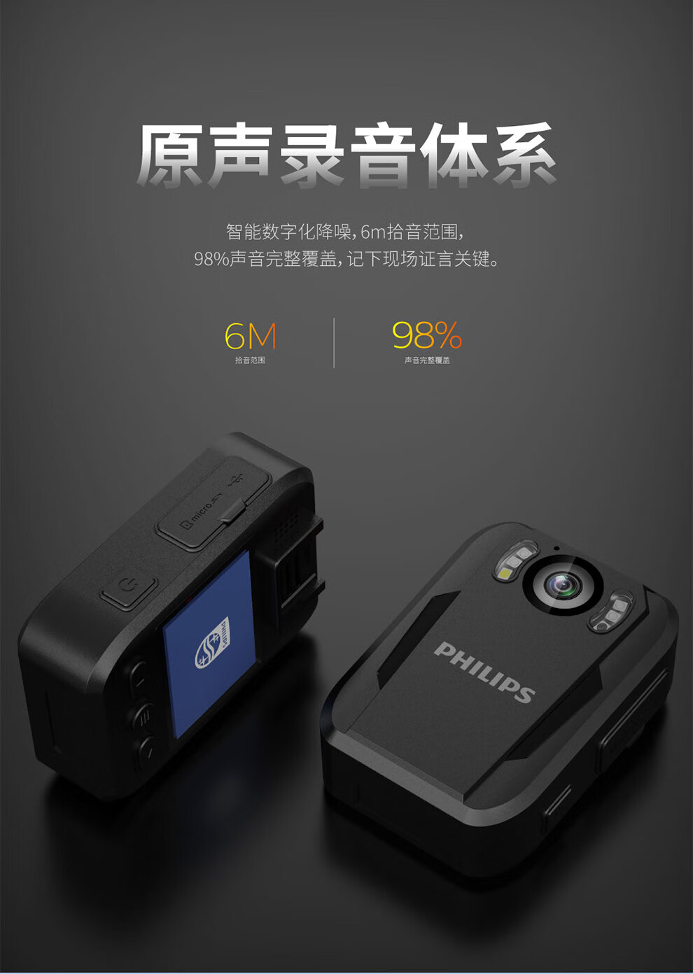 飞利浦(PHILIPS)VTR8102 便携音视频1296P高清红外夜视摄像机 录音笔 拍照 一体机 64G