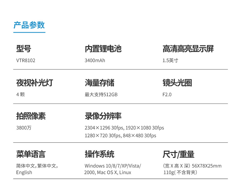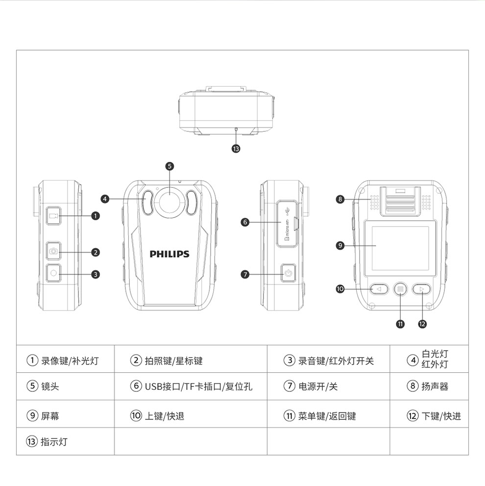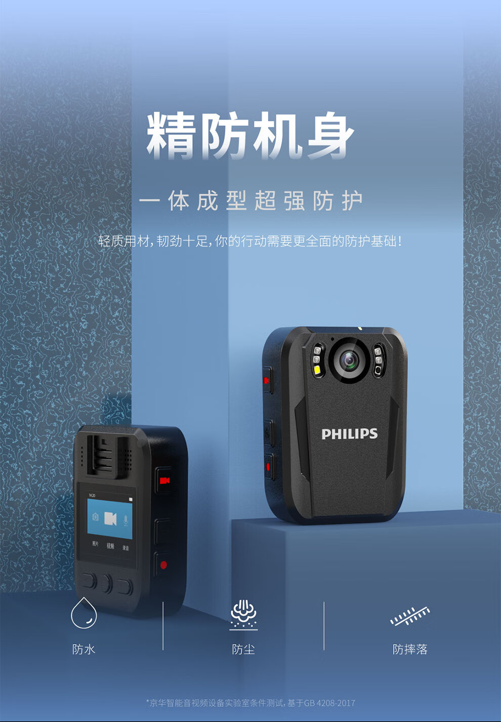 飞利浦(PHILIPS)VTR8102 便携音视频1296P高清红外夜视摄像机 录音笔 拍照 一体机 64G